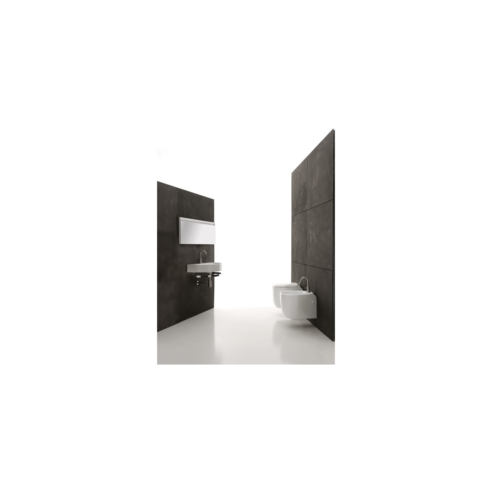 Lavabo dappui/suspendu en céramique blanc poli.