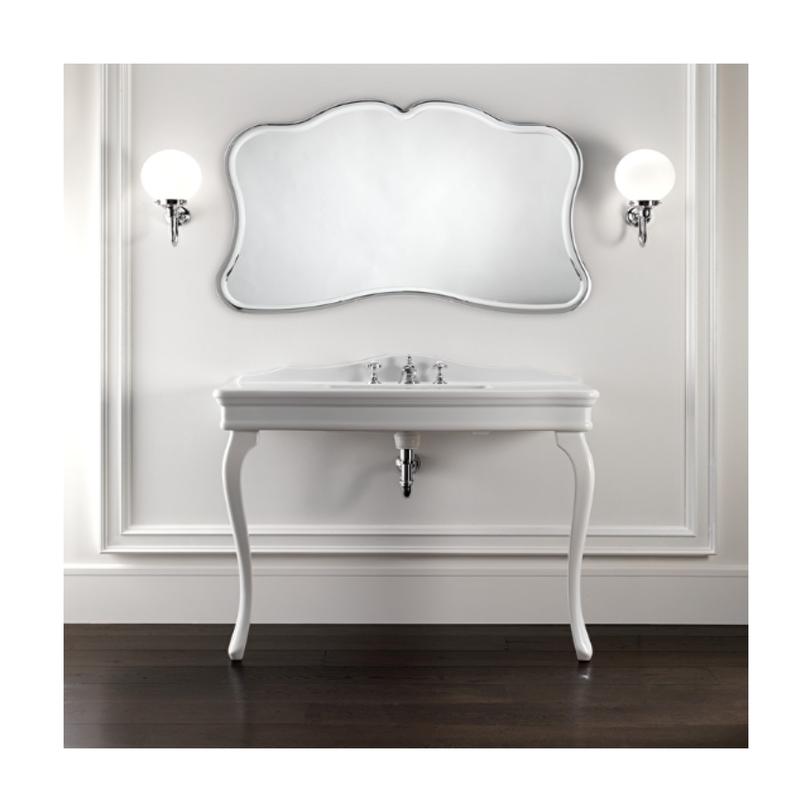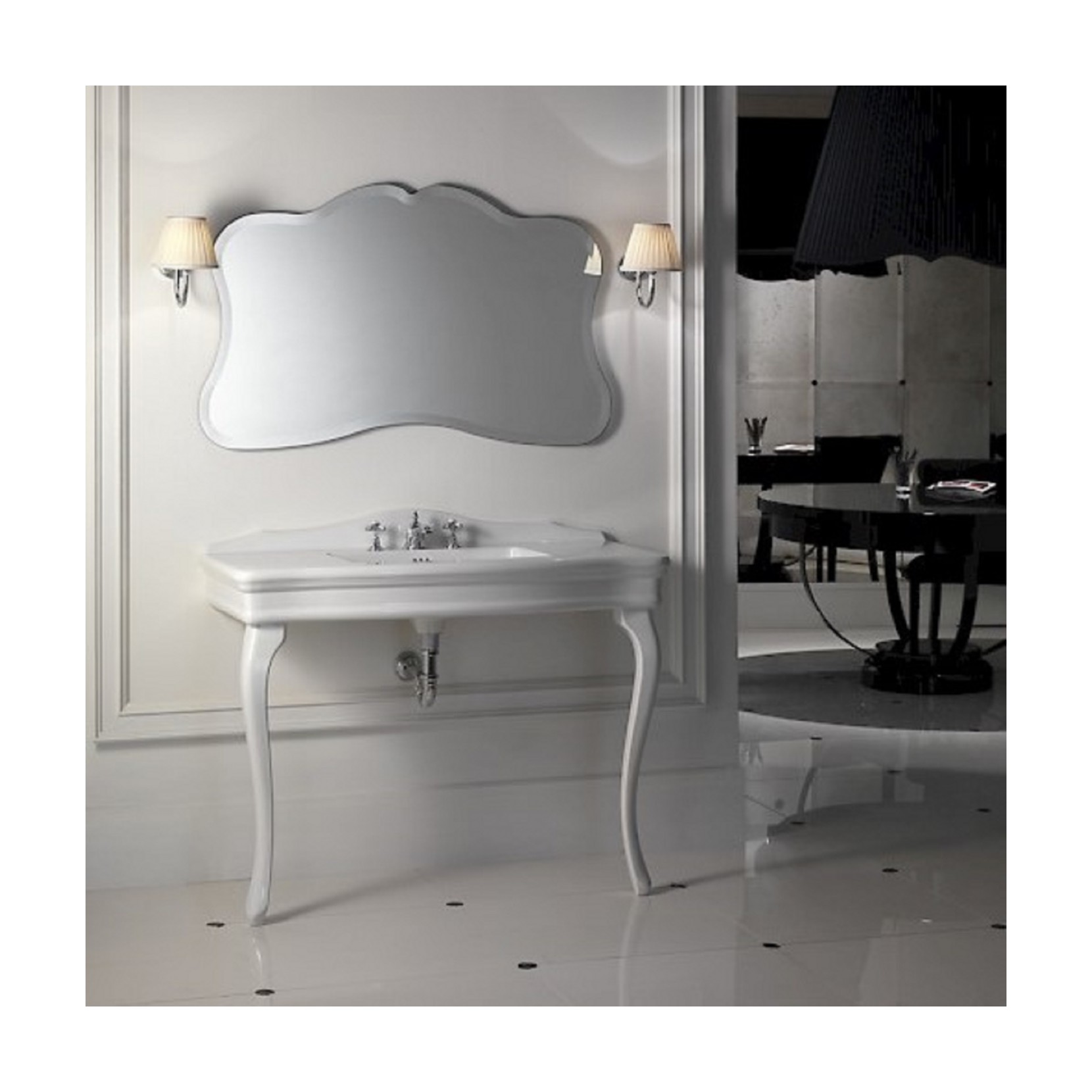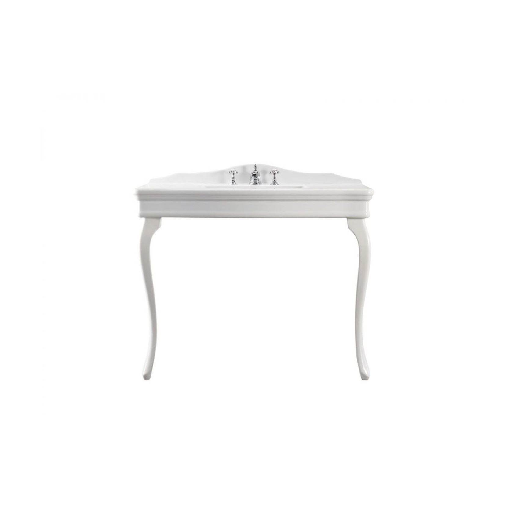 La Console Colette avec une élégance innée et un charme intemporel, un hommage au design romantique-classique. Colette se présente avec plateau et pieds en céramique blanche.