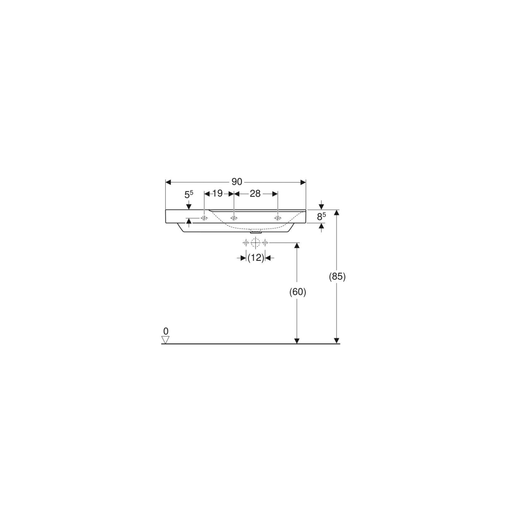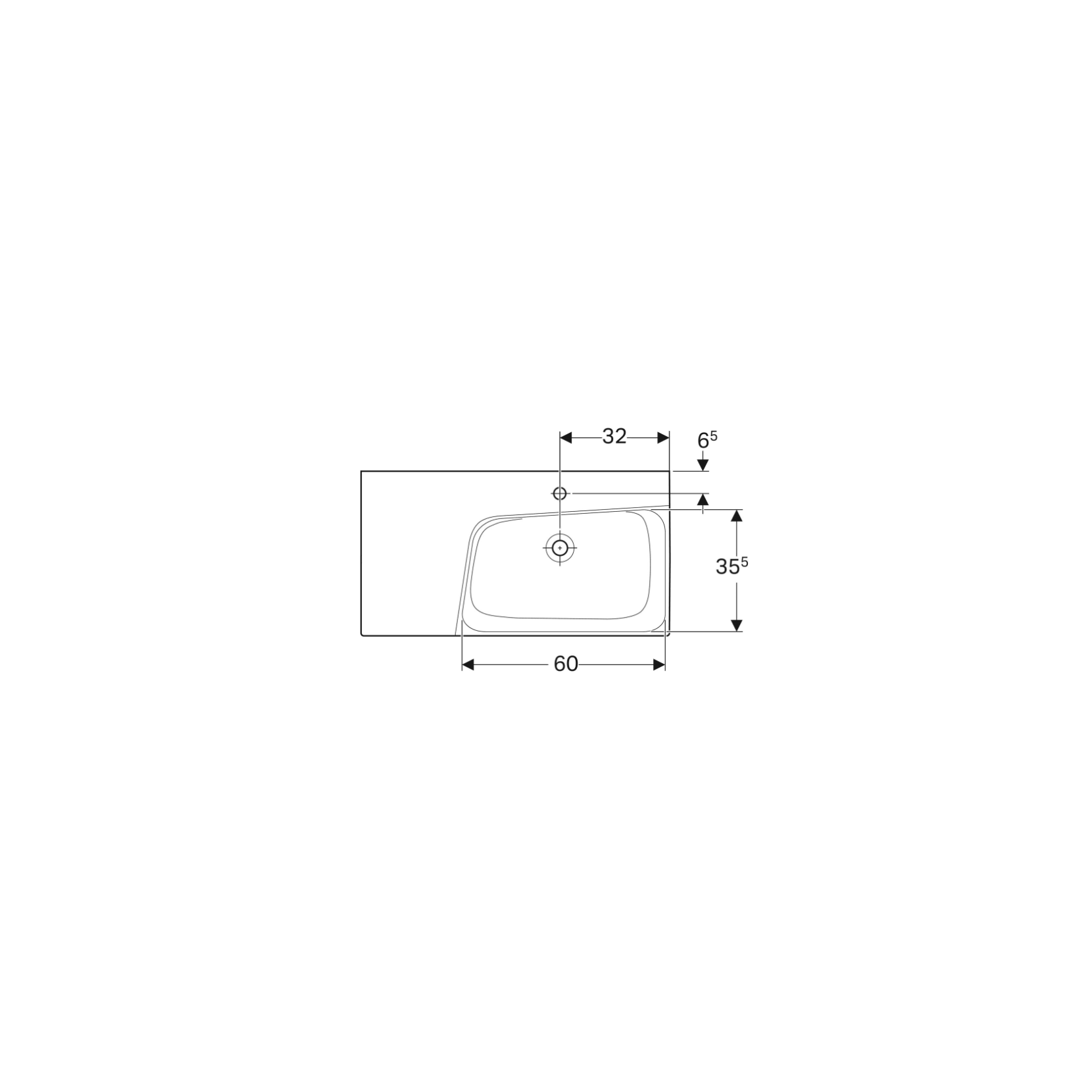 Geberit Xeno², Evier Asymétrique 90 cm à gauche
