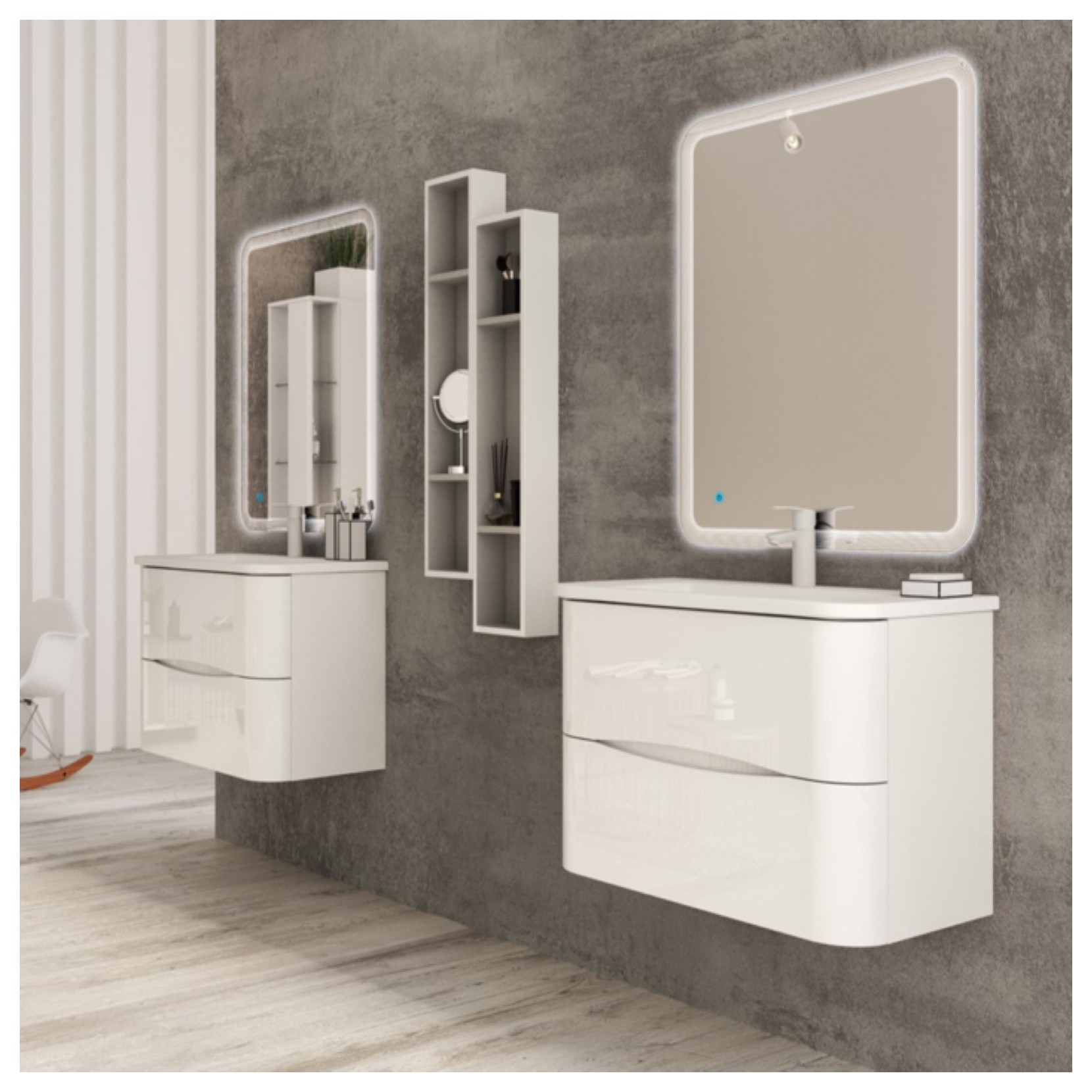 La ligne Angie a été conçue avec une nouvelle ouverture à la gorge du tiroir et une fermeture soft motion. Déjà apprécié depuis longtemps pour son élégance et sa praticité dans les finitions Bianco Lucido et Rovere Scuro Soft, il se présente aujourd’hui sous un nouveau look pour garantir un maximum de confort même dans les espaces les plus restreints.