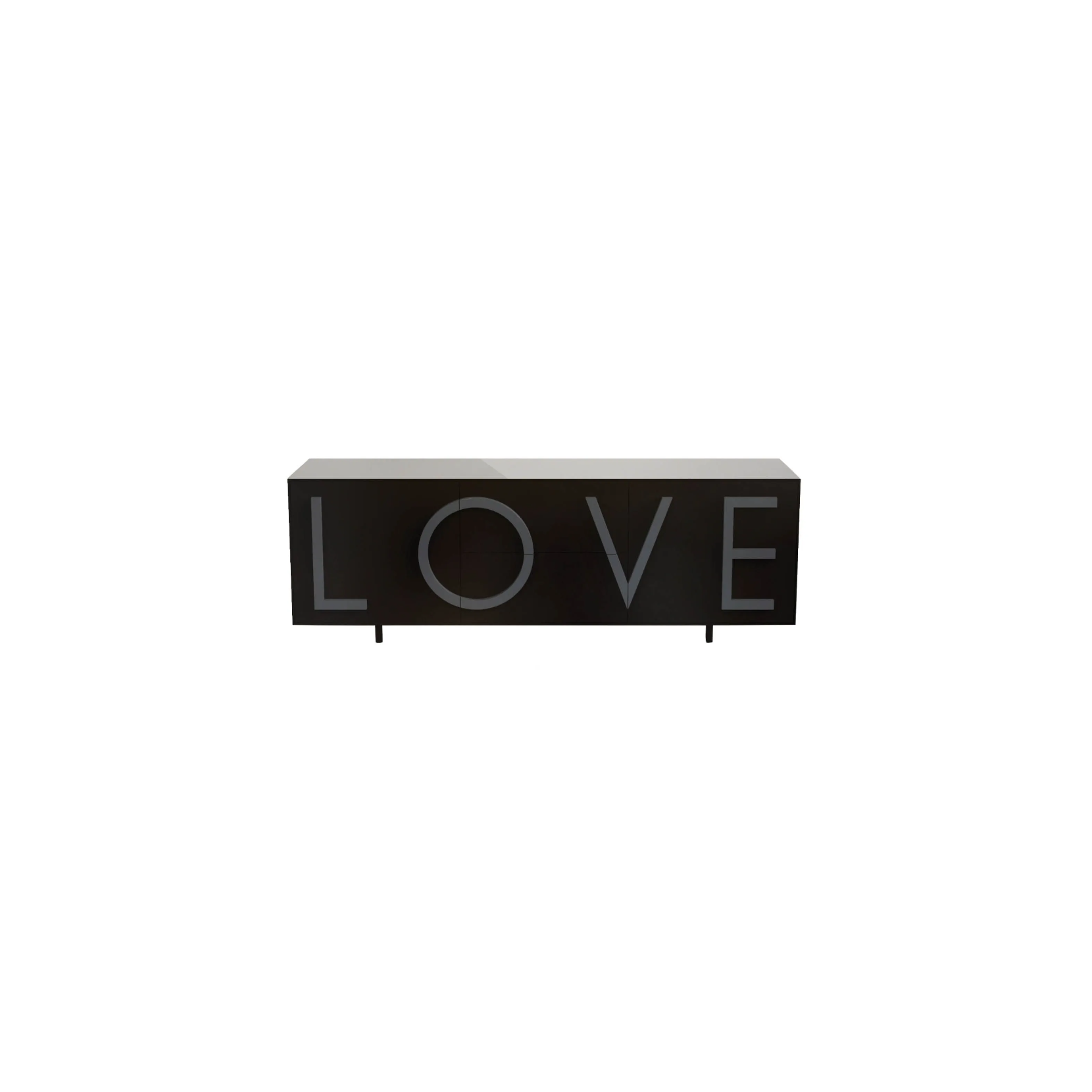 LOVE est un conteneur en MDF laqué blanc avec deux portes latérales à battant et étagère interne amovible, avec deux commodes centrales à extraction totale. Structure en MDF laqué extérieurement et intérieurement. Inscription LOVE en relief avec fonction de poignée en MDF laqué. Pieds cylindriques réglables diamètre 3,5 cm. et hauteur 10 cm. de la même couleur que la structure. Usage intérieur uniquement.