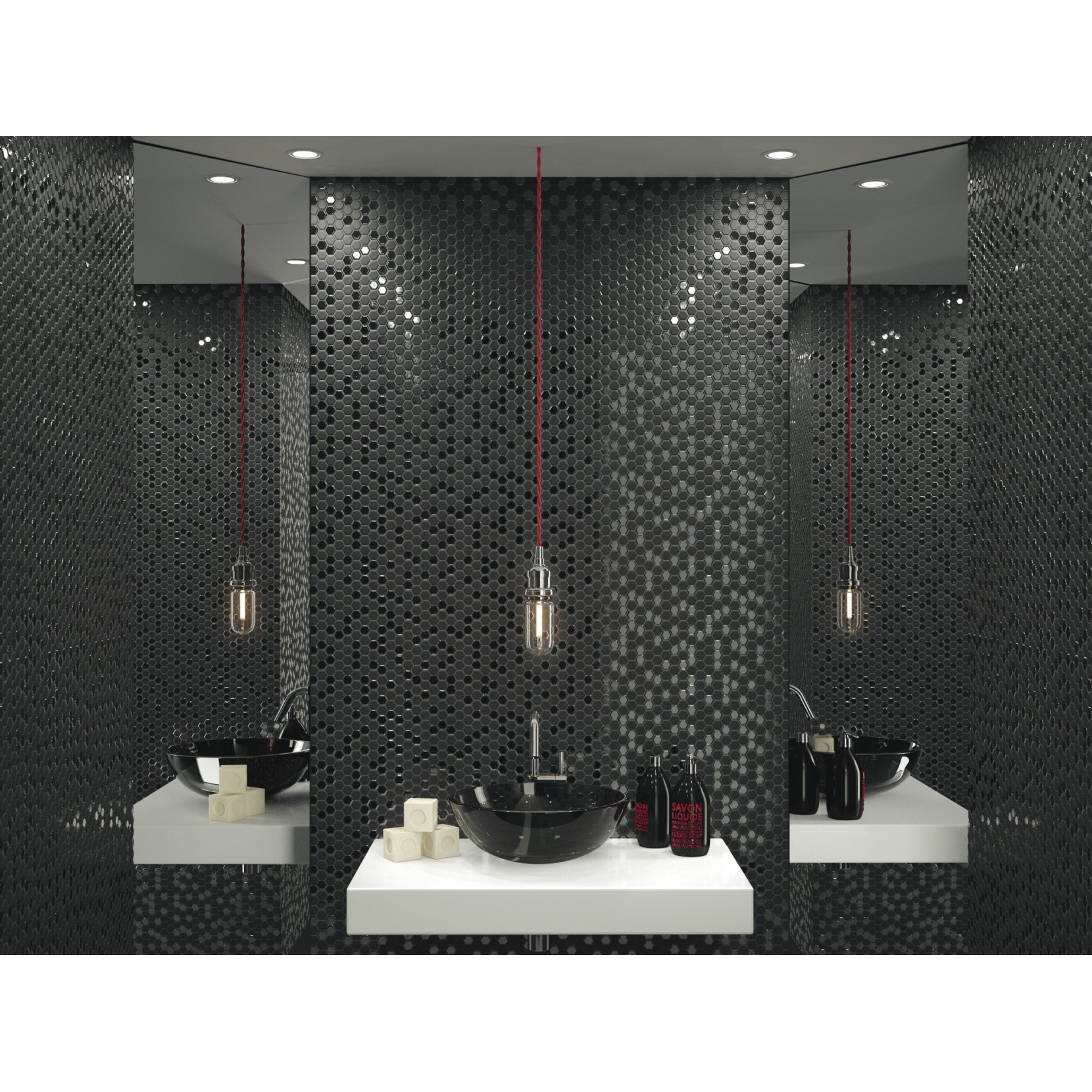 Mosaïque hexagonale en verre recyclé. Les carreaux de mosaïque se fondent avec les finitions polies et satinées