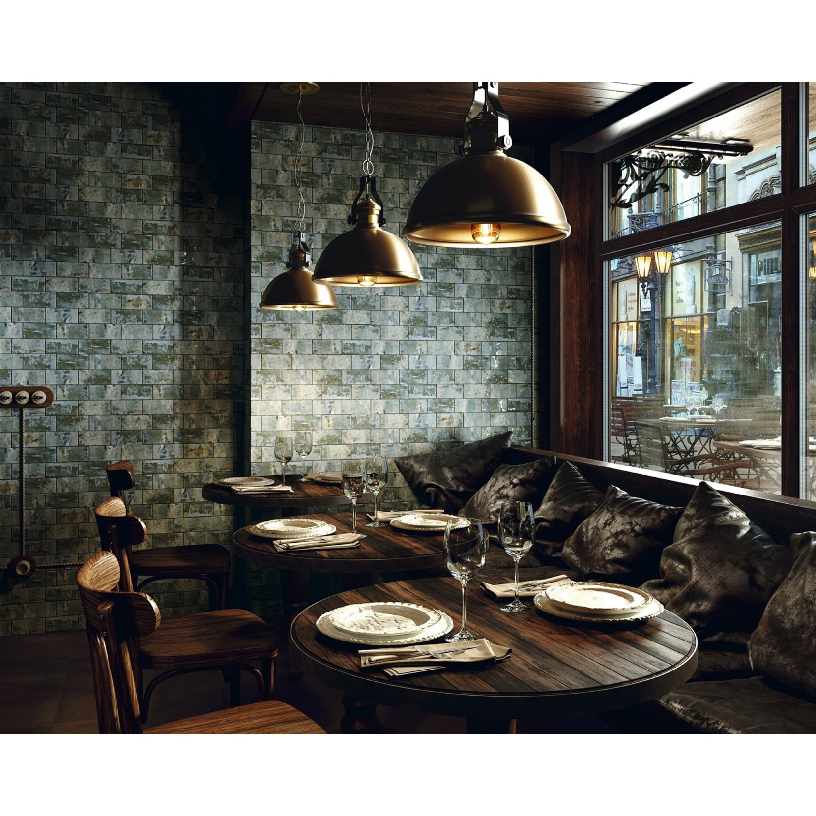 Mosaïque en céramique avec les couleurs de la statue de la liberté. Couleur verdâtre produite par l’oxydation du cuivre exposé aux intempéries.