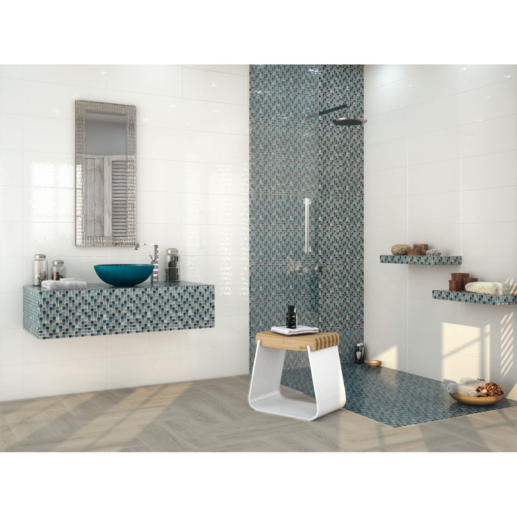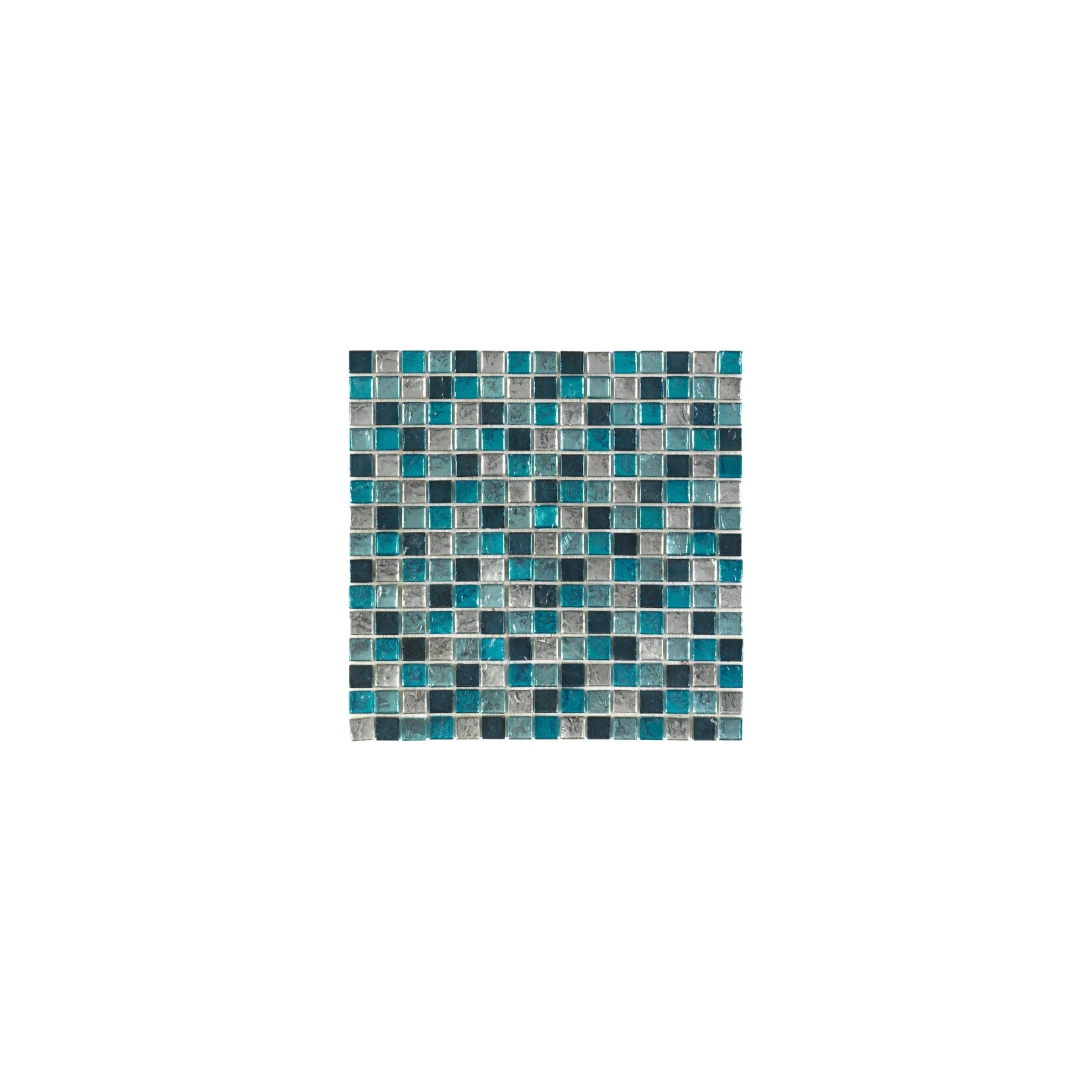 Mosaïque de verre avec de petites tuiles en turquoise et en argent. Idéal pour la salle de bain.