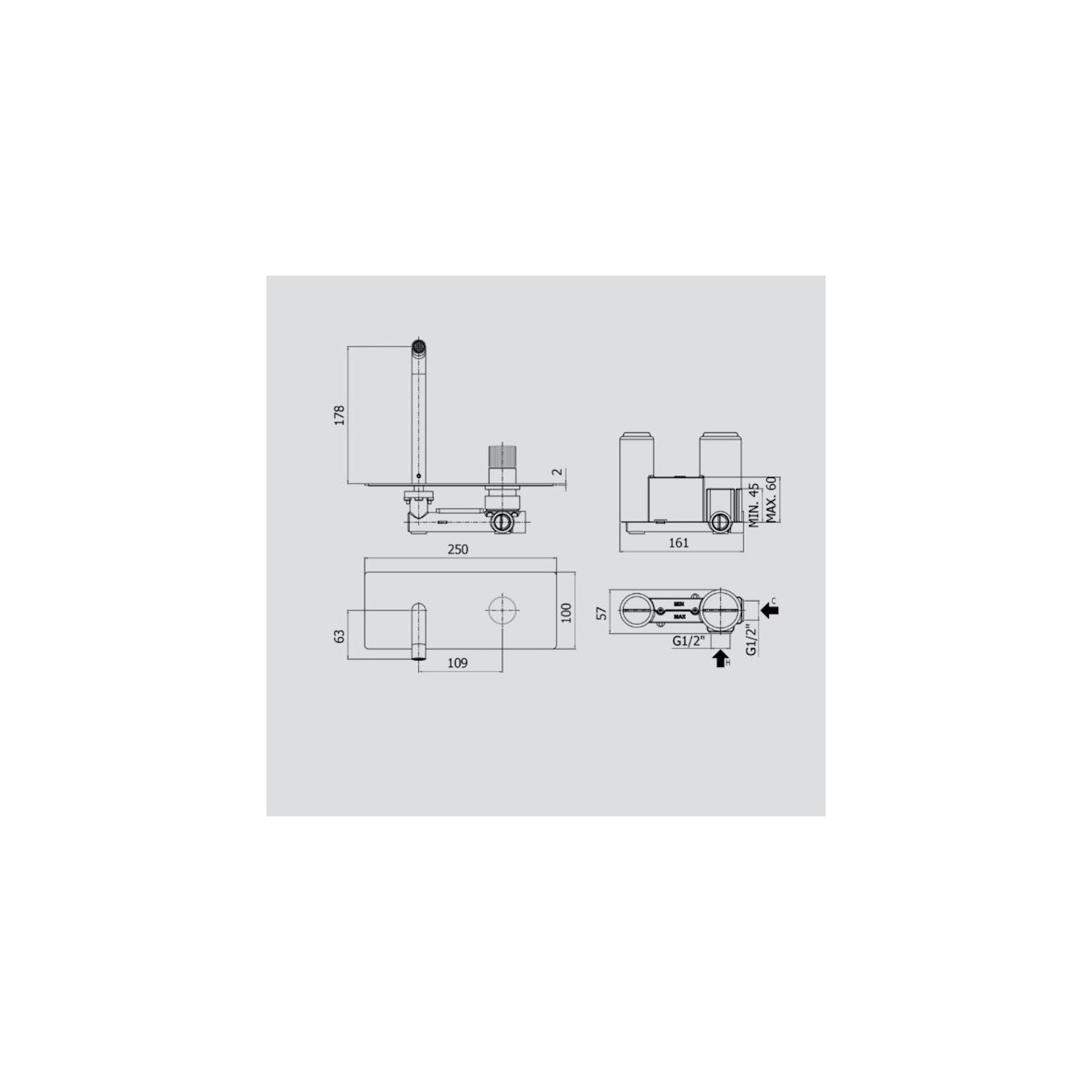 PAFFONI - Jo, Mélangeur de lavabo mural