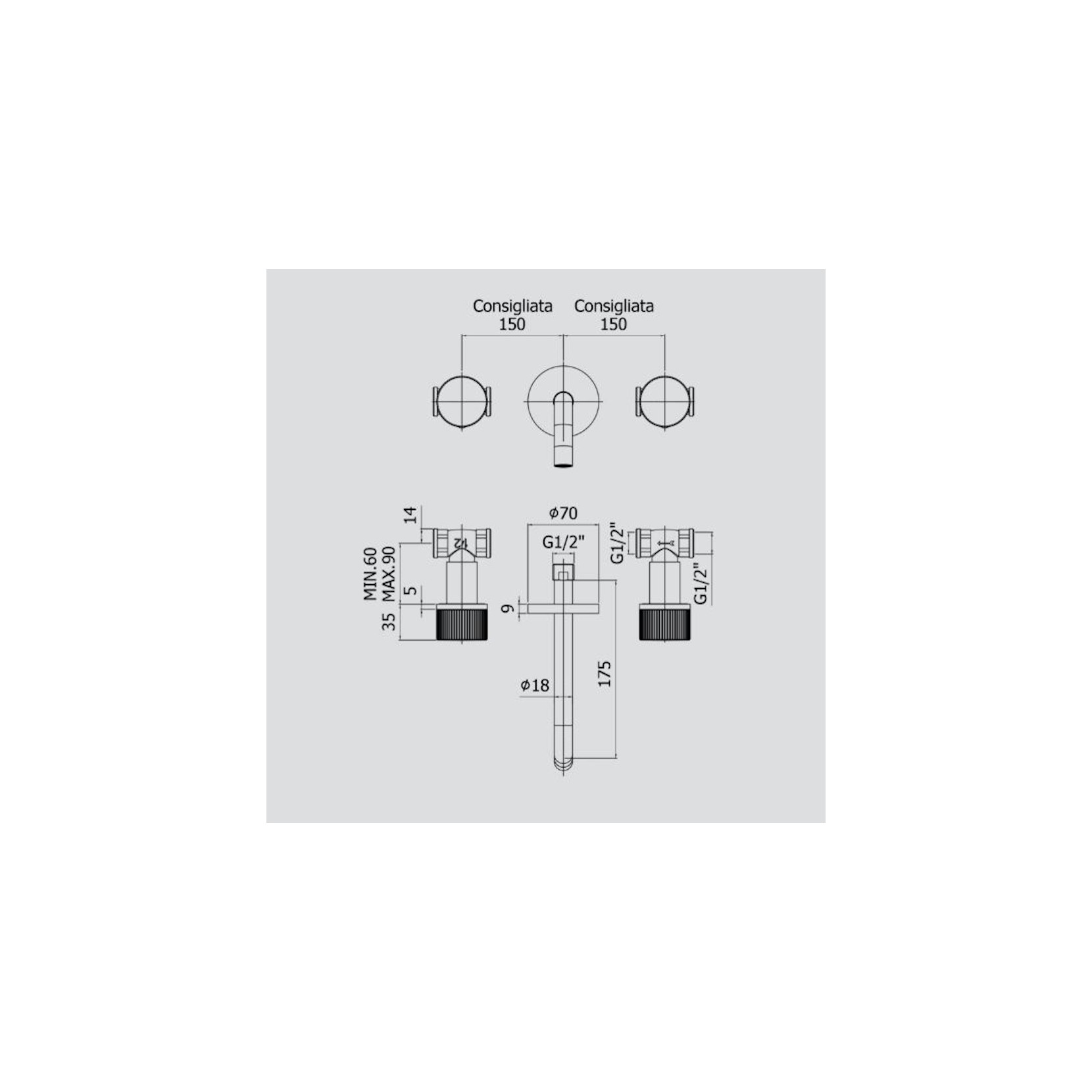 PAFFONI - Jo, Mélangeur de lavabo mural 3 trous