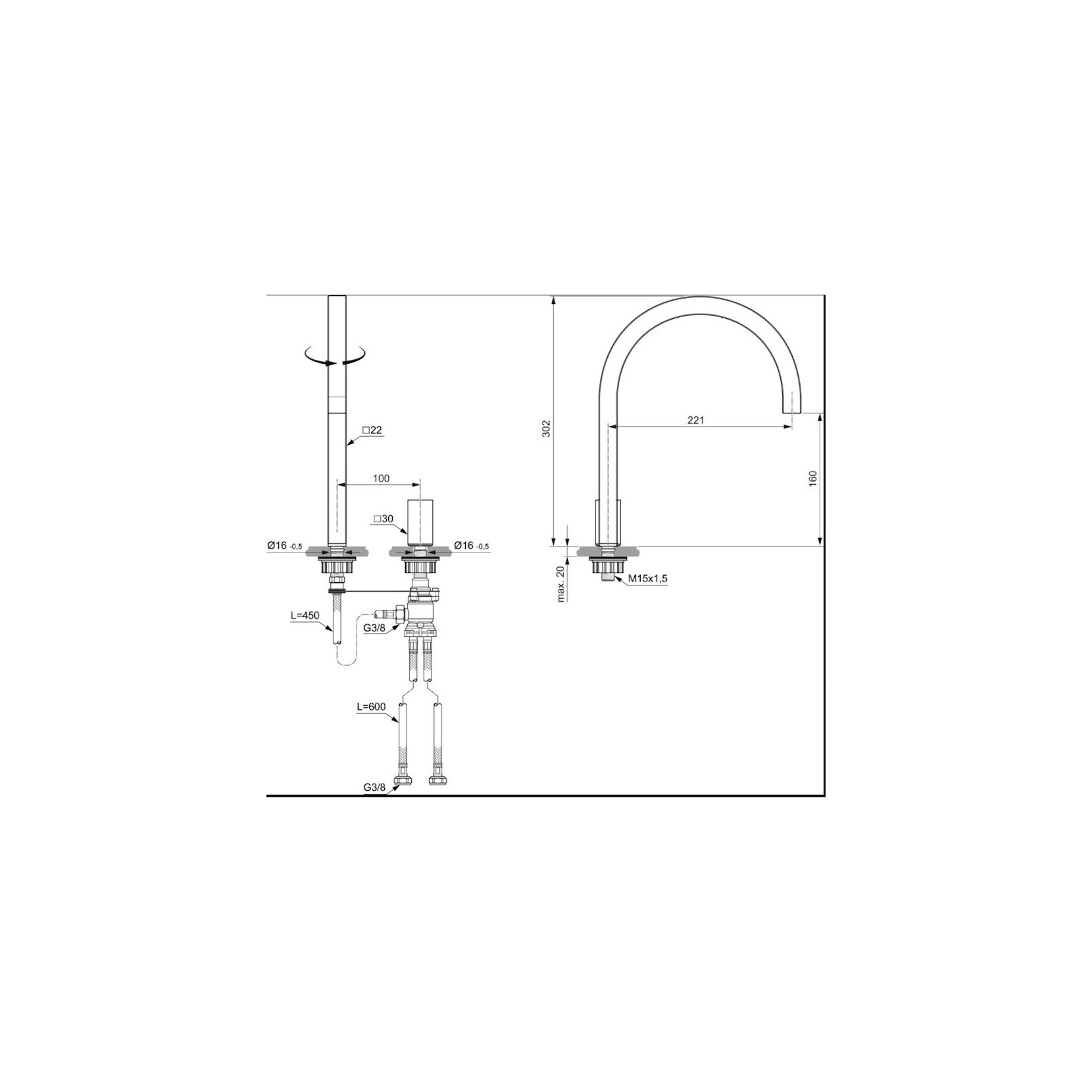 Raccordements deau et fixations cachées, pour un look soigné et propre.