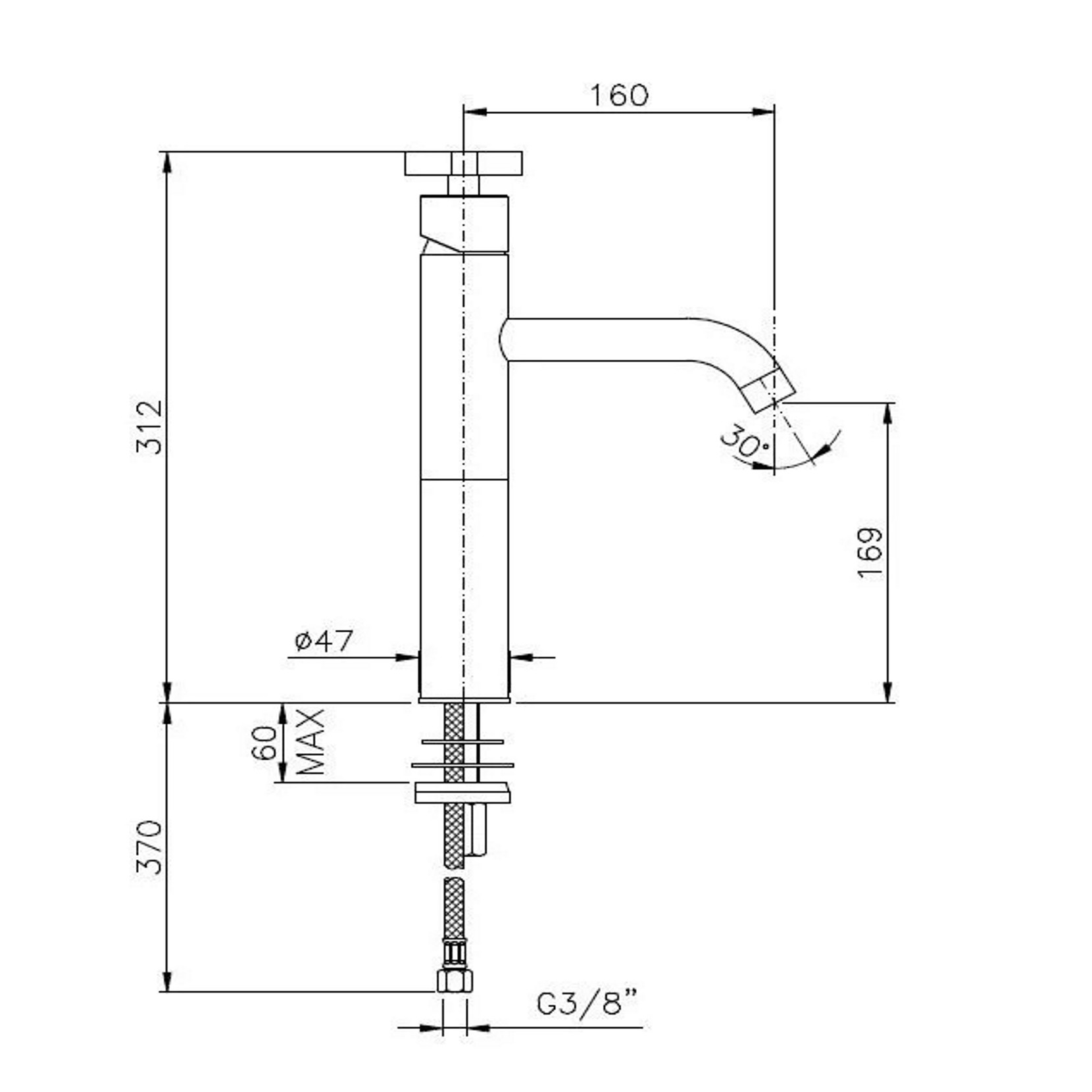 Disponible aussi la version de lavabo haut monocommande avec déchargement automatique (art. 3782+27X) avec les mêmes mesures mais qui subit une variation de prix. Indiquez au moment de la commande la version et la couleur souhaitée.