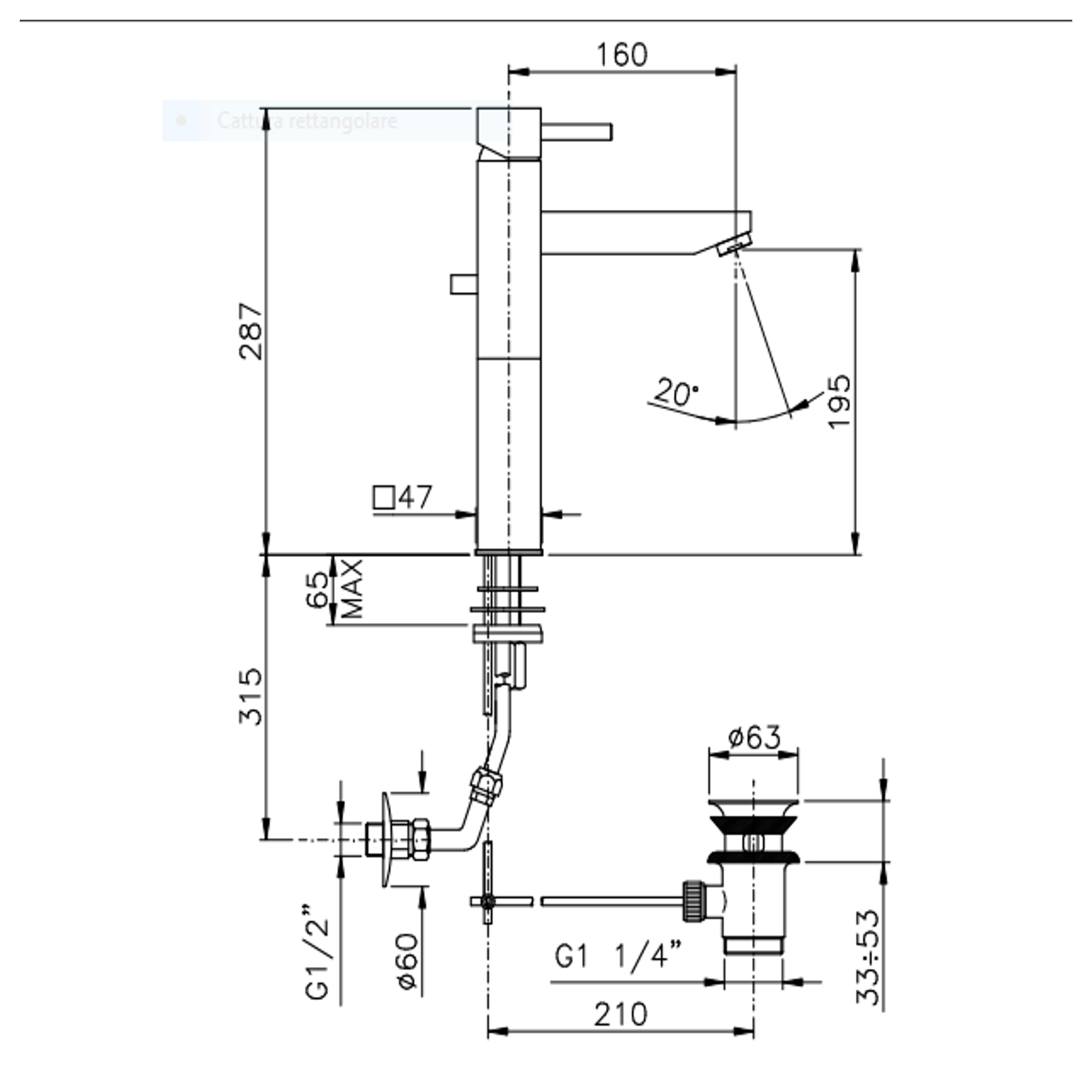 Officina Nicolazzi Monocomando Antelao, Monocommande lavabo haut