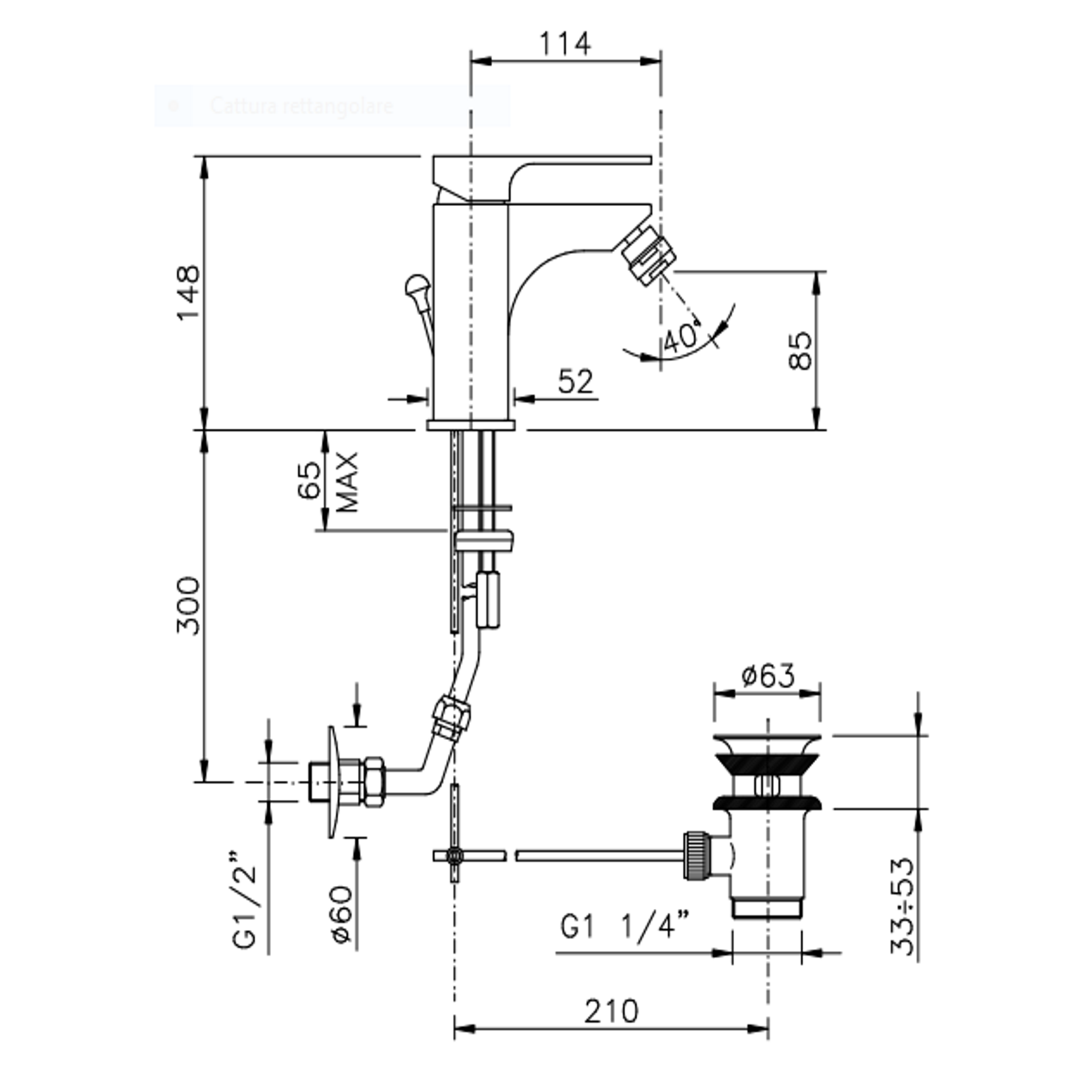 Officina Nicolazzi Monocomando Jungfrau, Monocommande pour bidet avec déchargement automatique