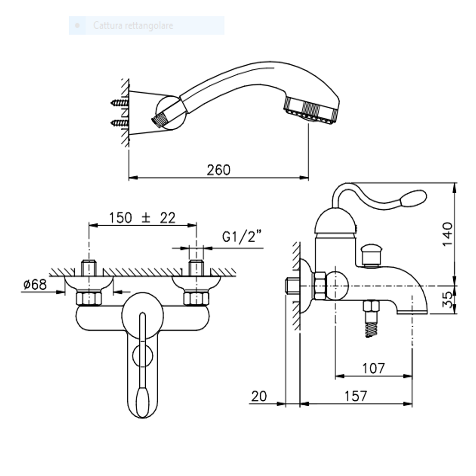 Officina Nicolazzi Monocomando Signal, Monocommande baignoire extérieure avec douche