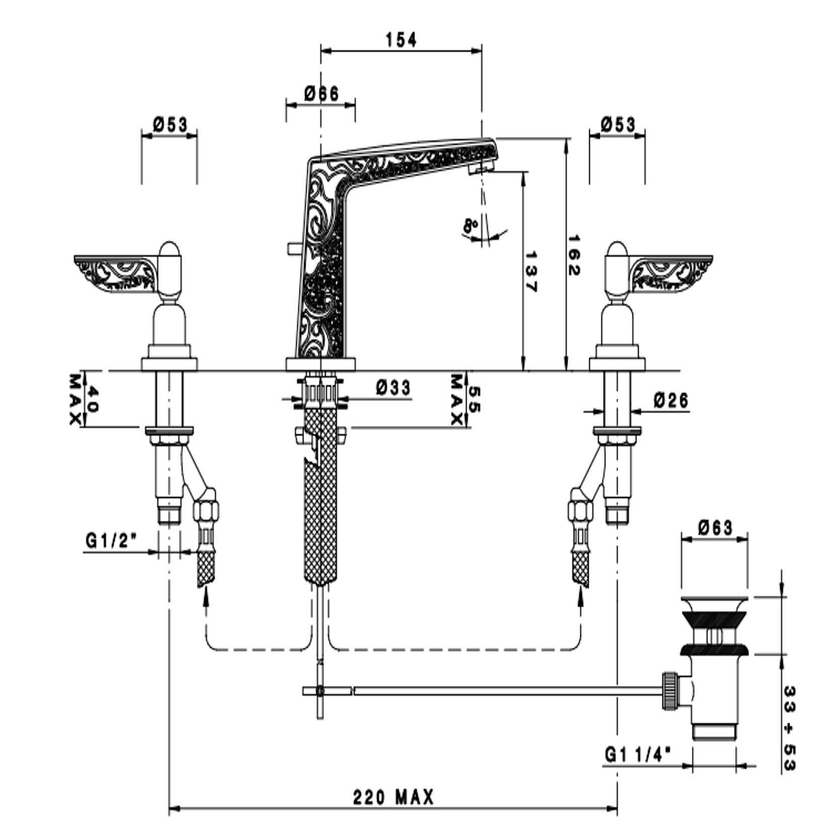 Officina Nicolazzi Liberty, Batería de lavabo de descarga automática
