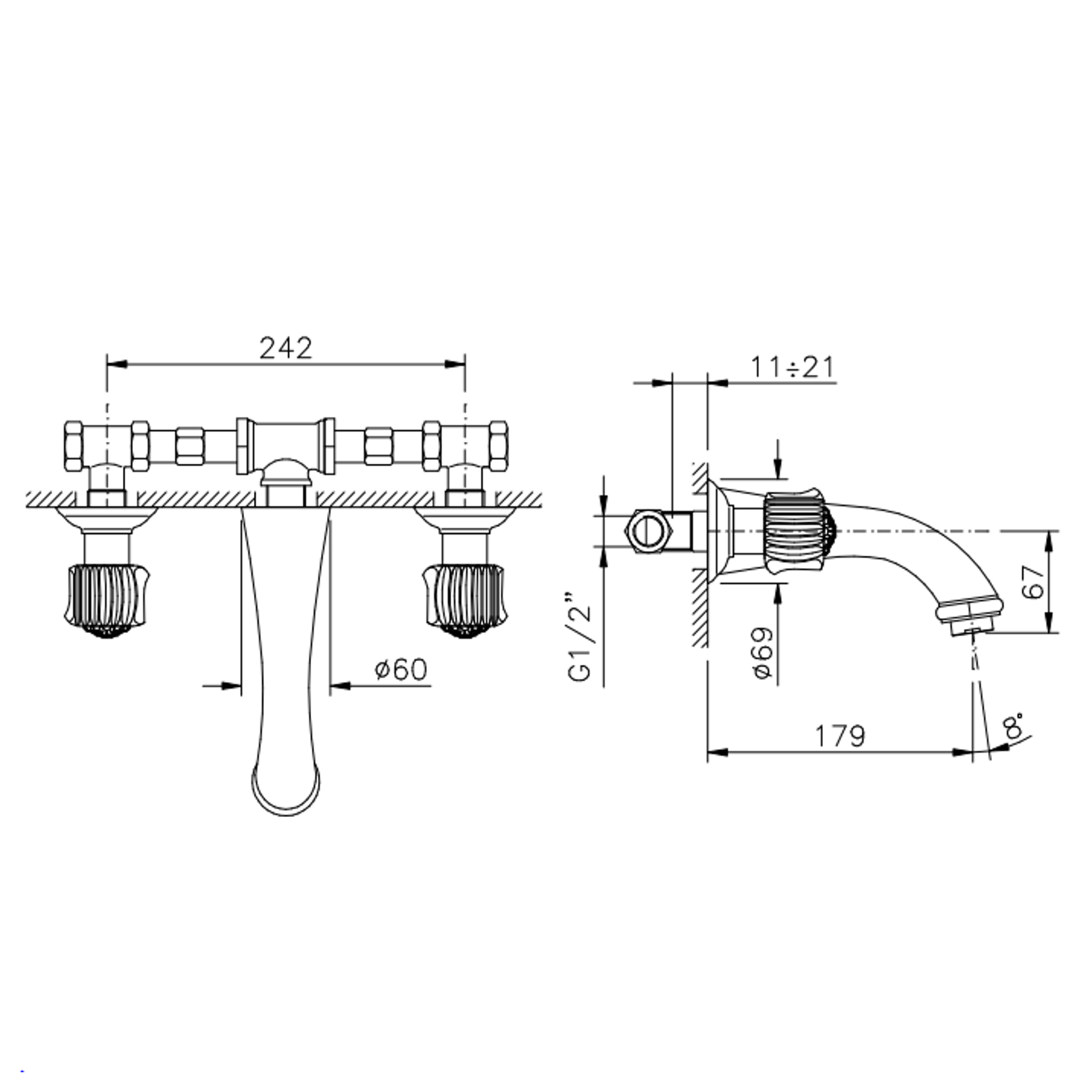 Officina Nicolazzi Onice, Batteria lavabo a parete