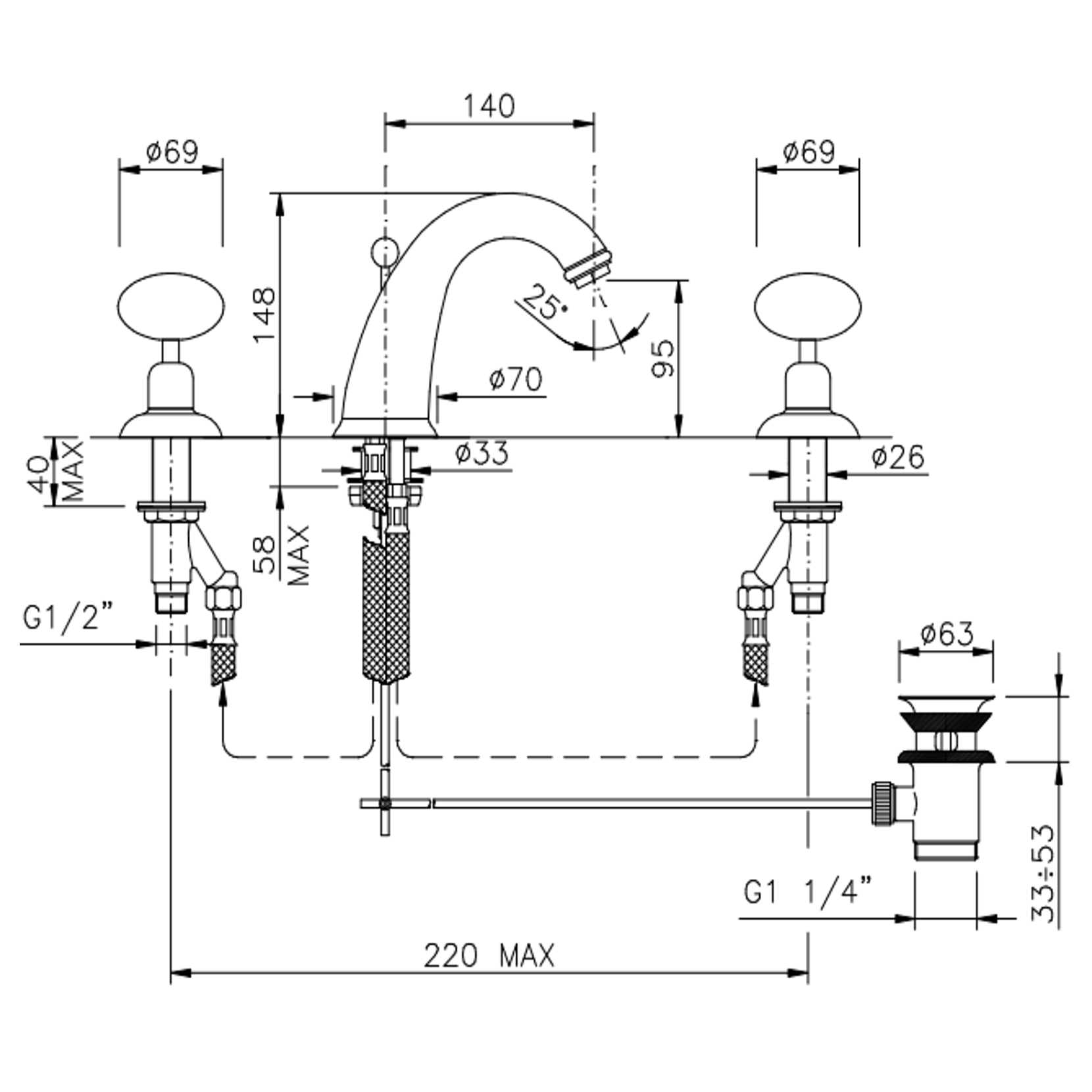 Officina Nicolazzi Cristallo di Rocca, Groupe de bord de la baignoire 4 trous