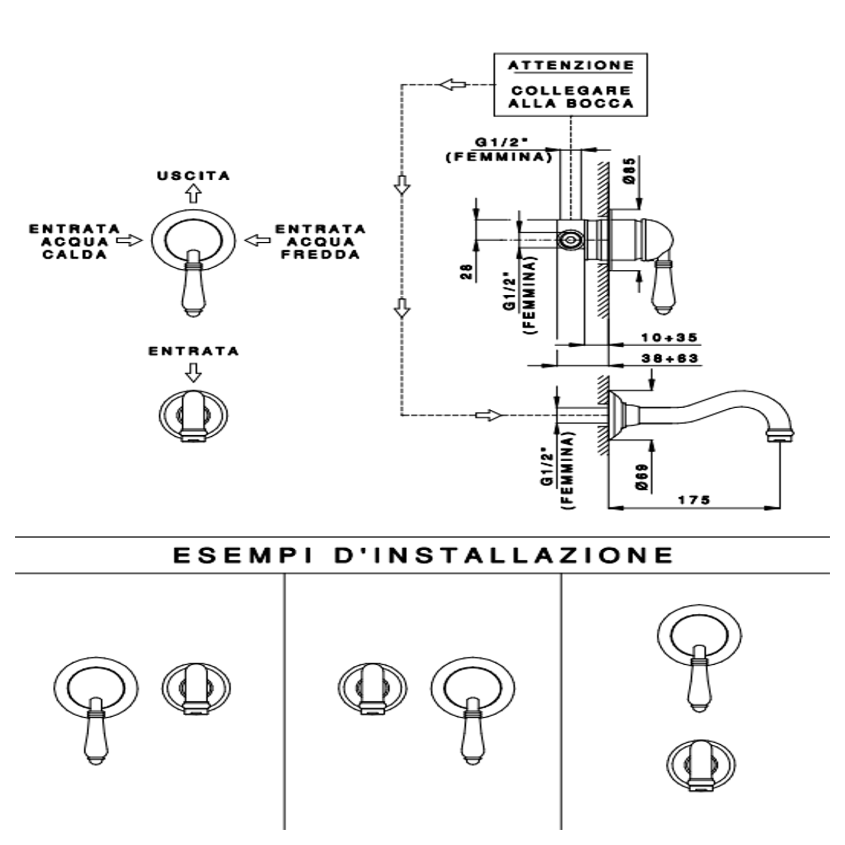 Officina Nicolazzi Monocomando Classico, Monocommande lavabo encastré