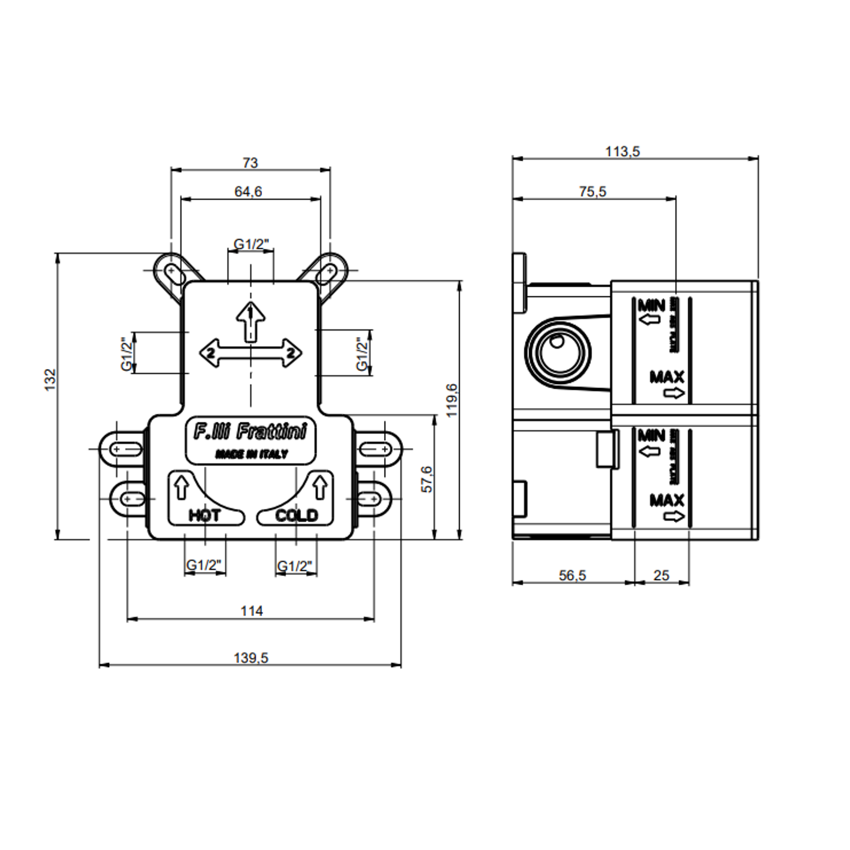F.lli Frattini Borgia 316 Inox, Monocommande encastrée à 2 voies