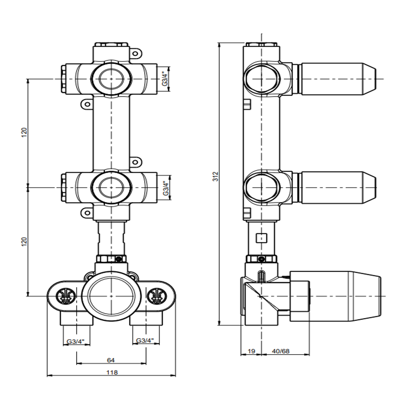 F.lli Frattini Borgia 316 Inox, Mitigeur de douche thermostatique 2-3 voies