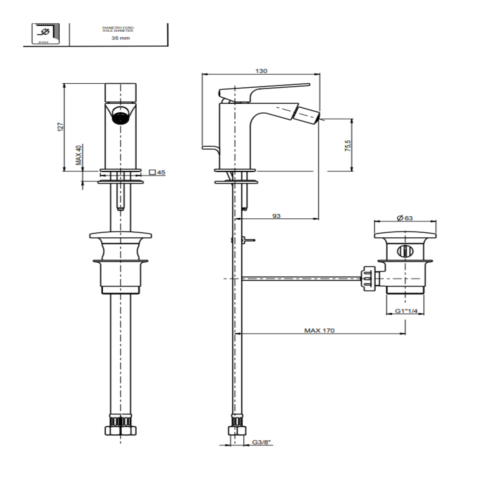 F.lli Frattini Narciso, Monocommande pour bidet avec échappement 1"1/4