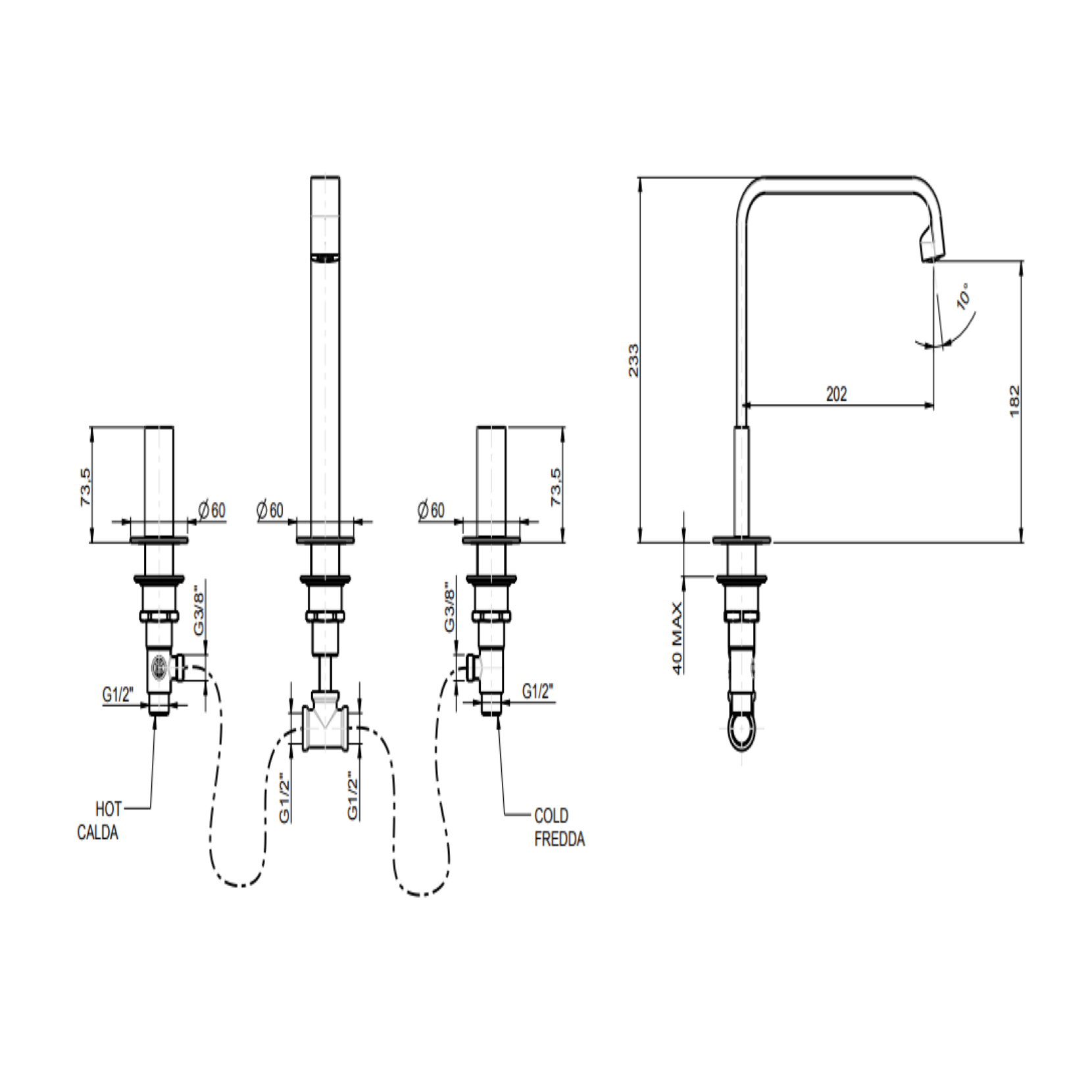 F.lli Frattini propose la collection Contemporary avec la série Vita, en particulier la batterie de lavabo avec bouche haute fixe sans décharge, à monter avec une bonde et un siphon. La série est une excellente combinaison de minimalisme et d’élégance qui font de Vita , un emblème du luxe dans le monde de la salle de bains.