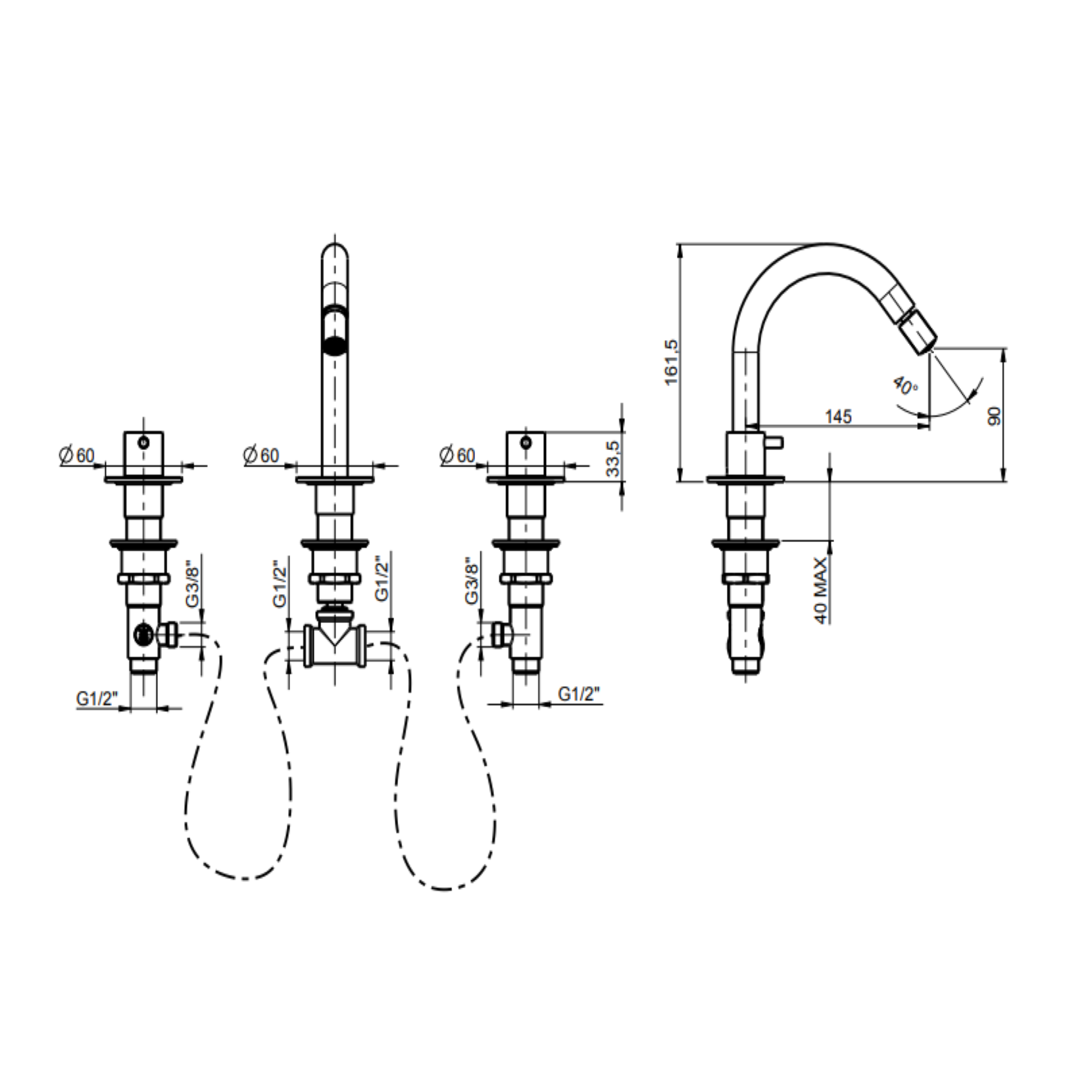 F.lli Frattini Pepe XL, Batterie bidet avec bouche haute fixe