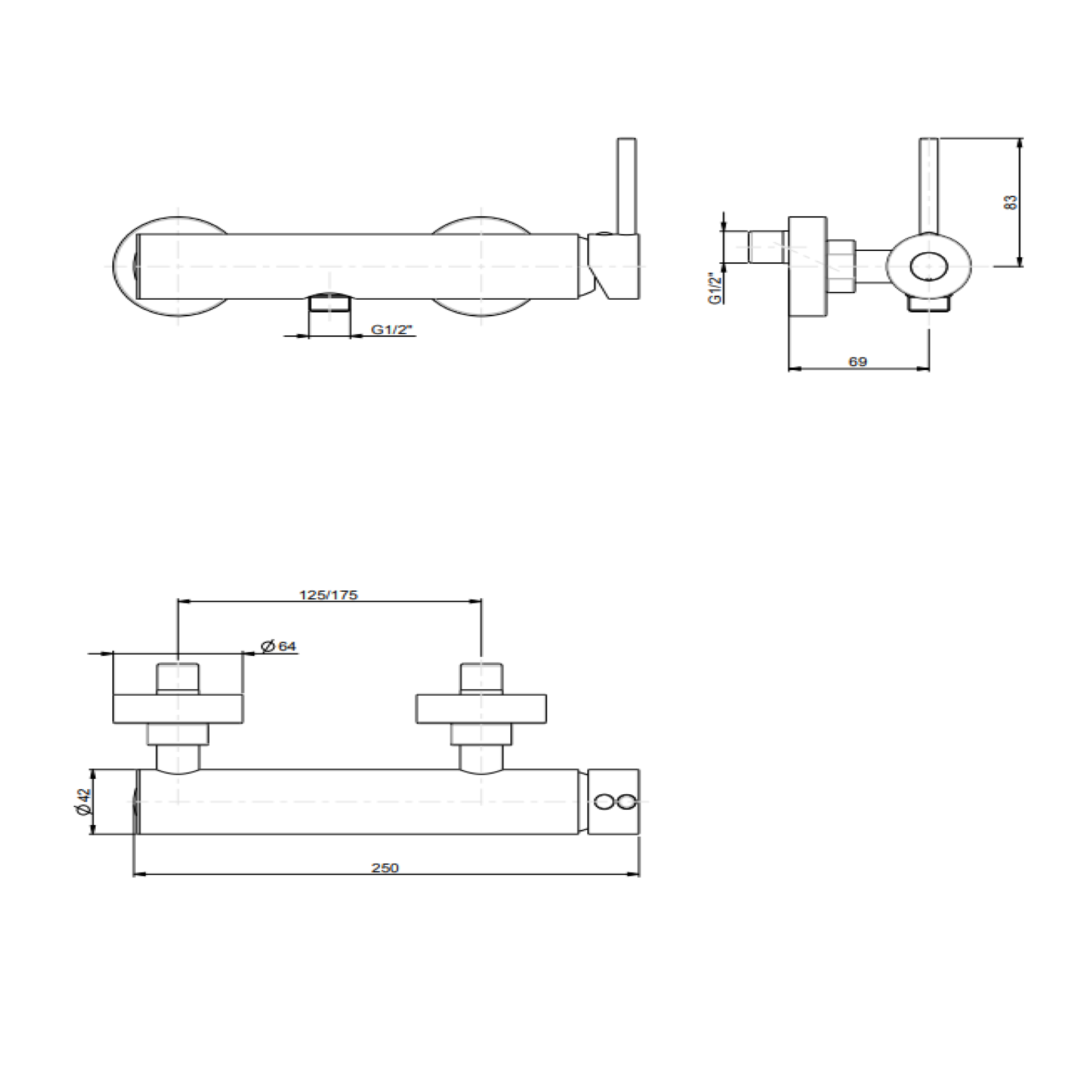 F.lli Frattini Pepe XL, Mitigeur de douche avec raccord inferieur 1/2