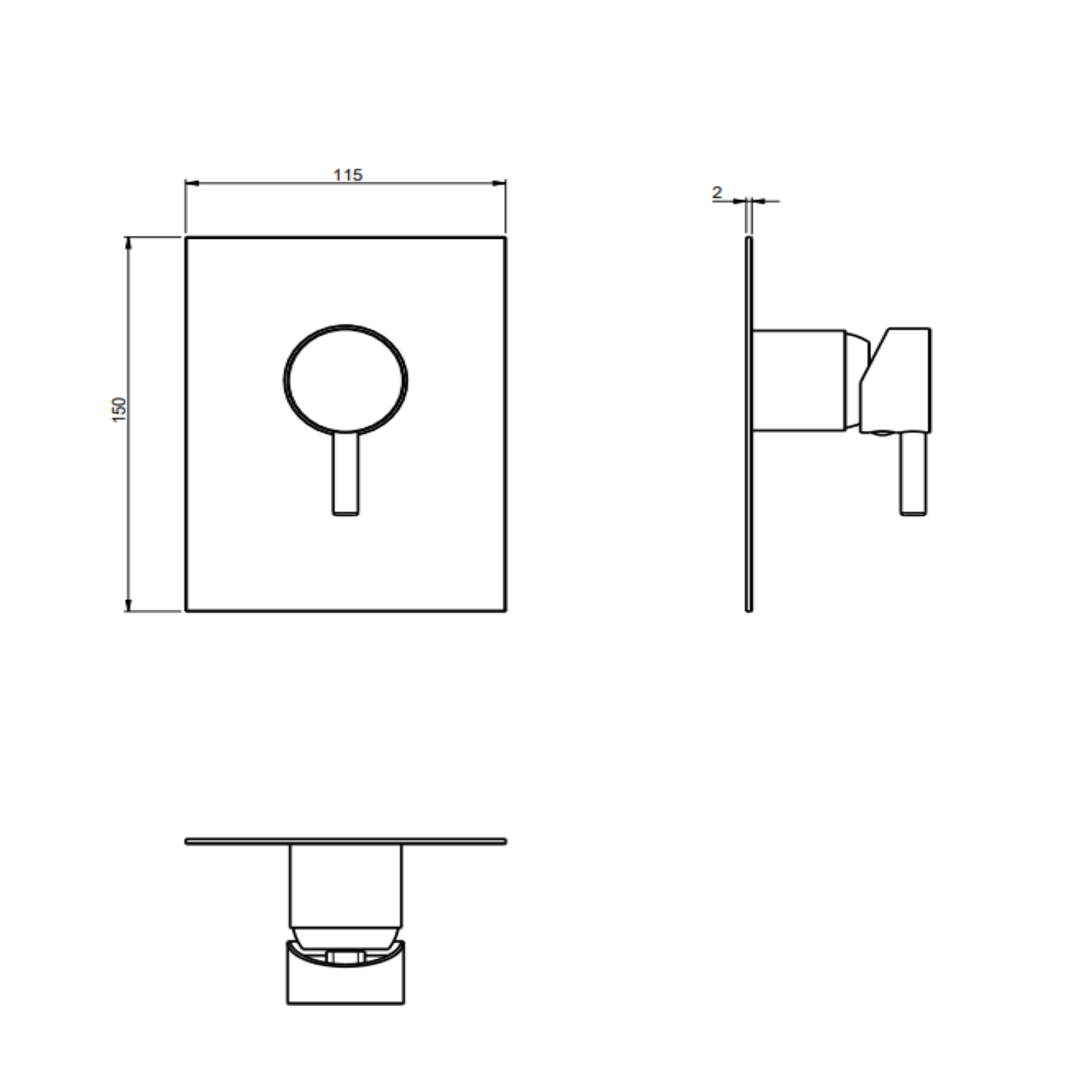 F.lli Frattini Pepe XL, Monocommande encastré pour douche, plaque en laiton