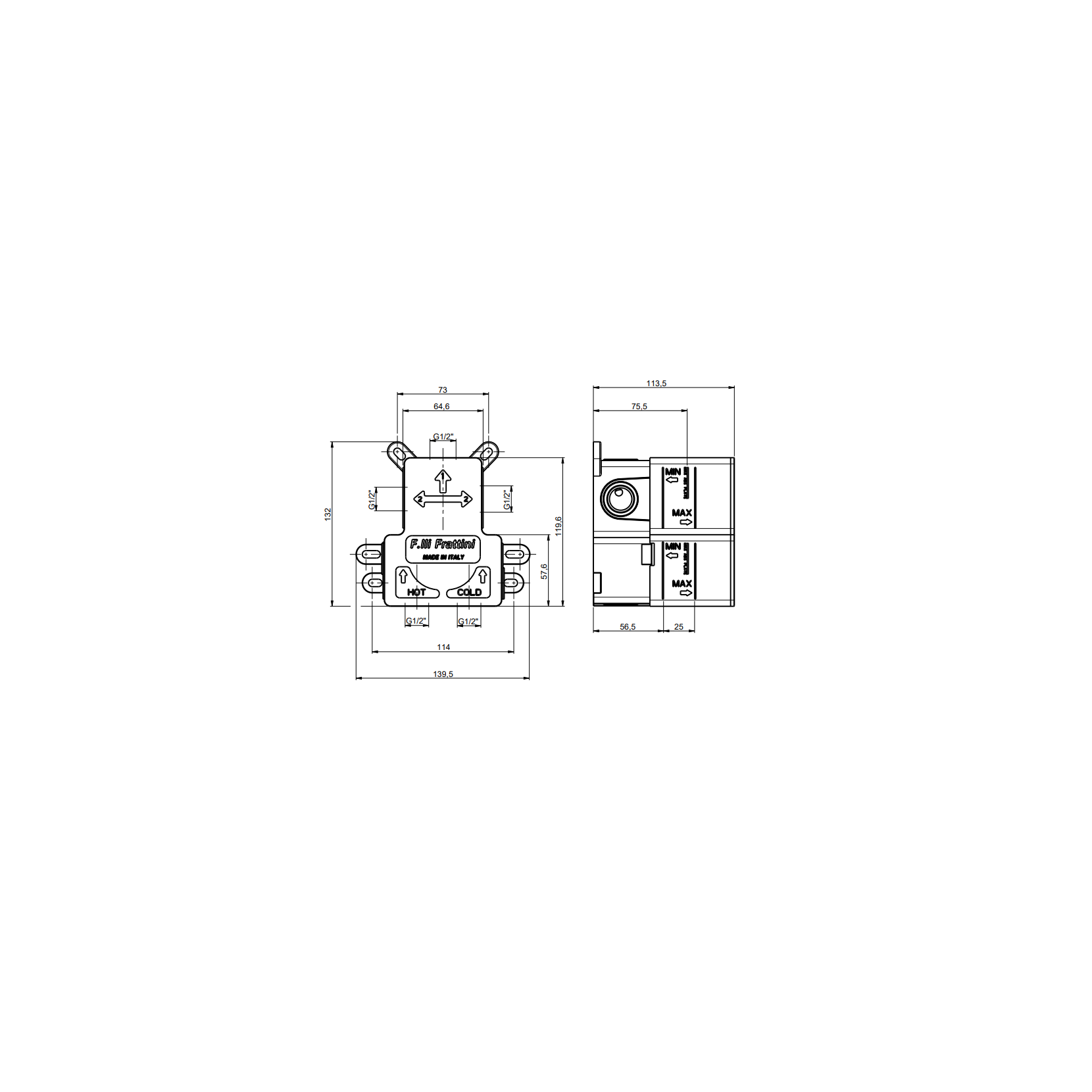 F.lli Frattini Pepe XL, Monocommande encastrée à 2 voies