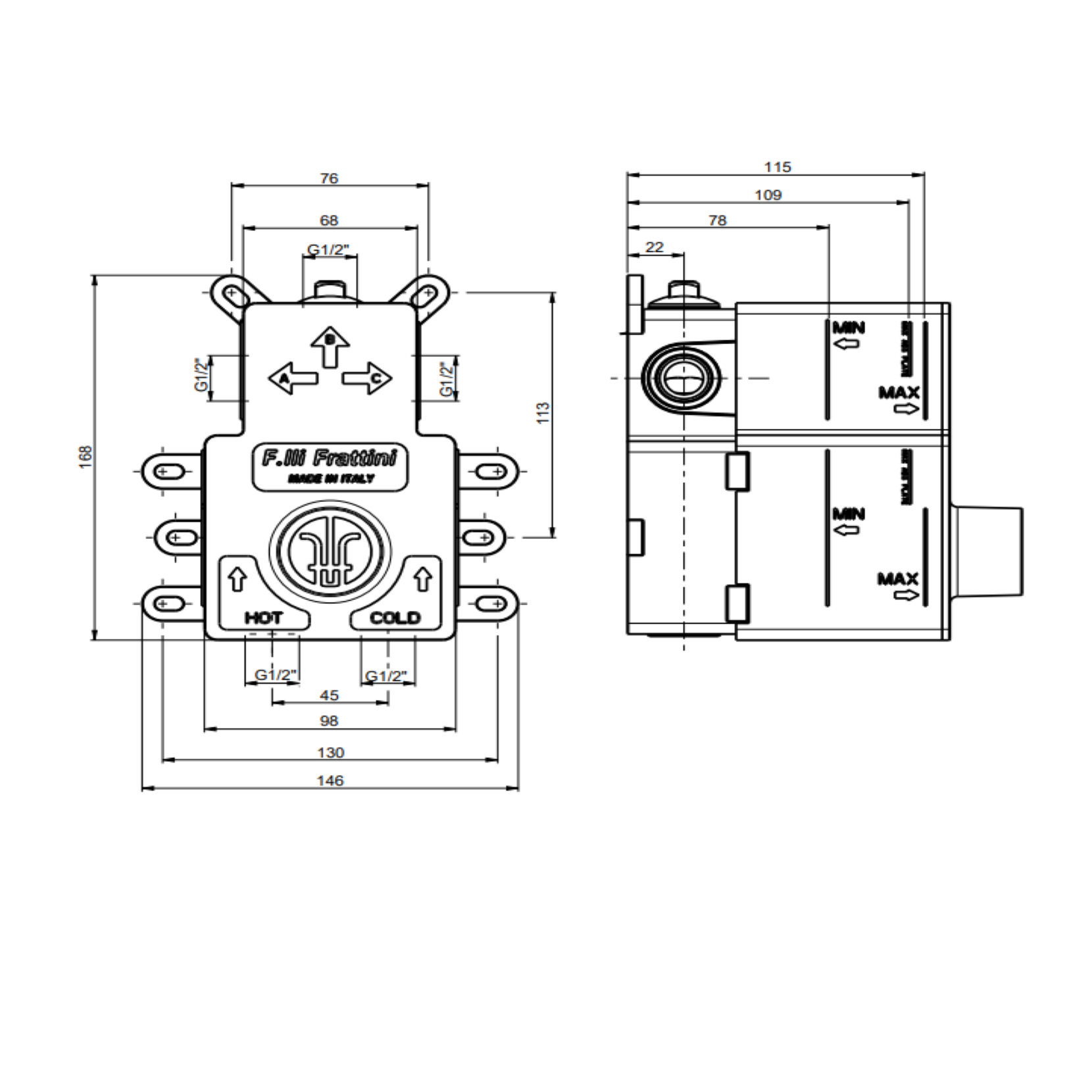F.lli Frattini Pepe XL, Monocommande encastrée avec déviateur 3 voies
