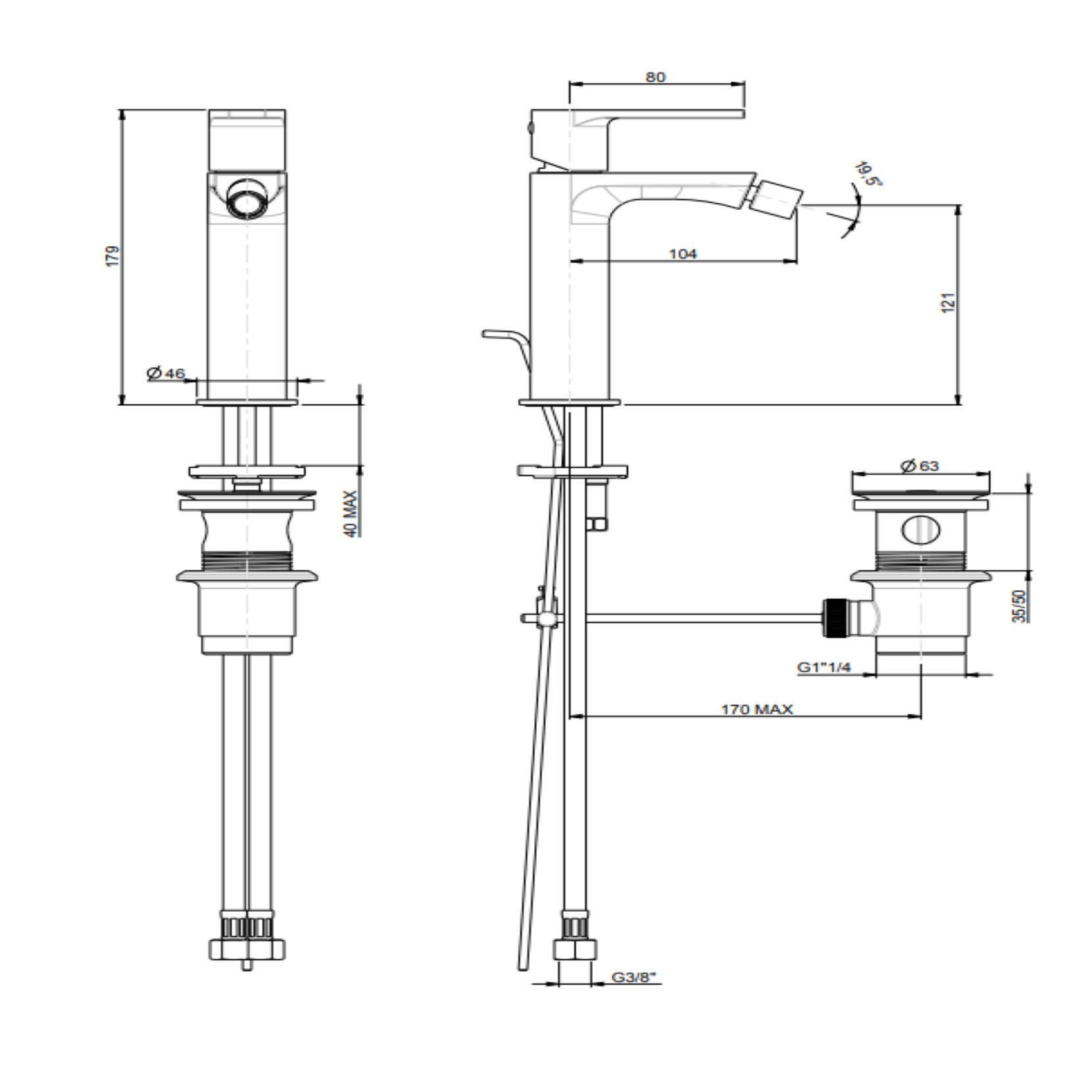 F.lli Frattini Gioia, Mitigeur de bidet avec vidage 11/4