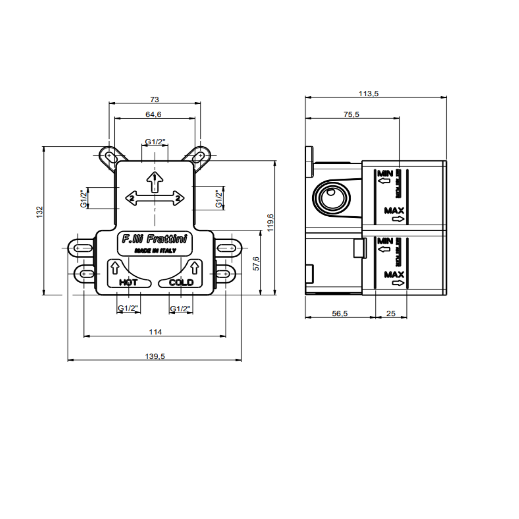 F.lli Frattini Gaia, Kit de finition mitigeur encastré 1 voie, plaque en laiton