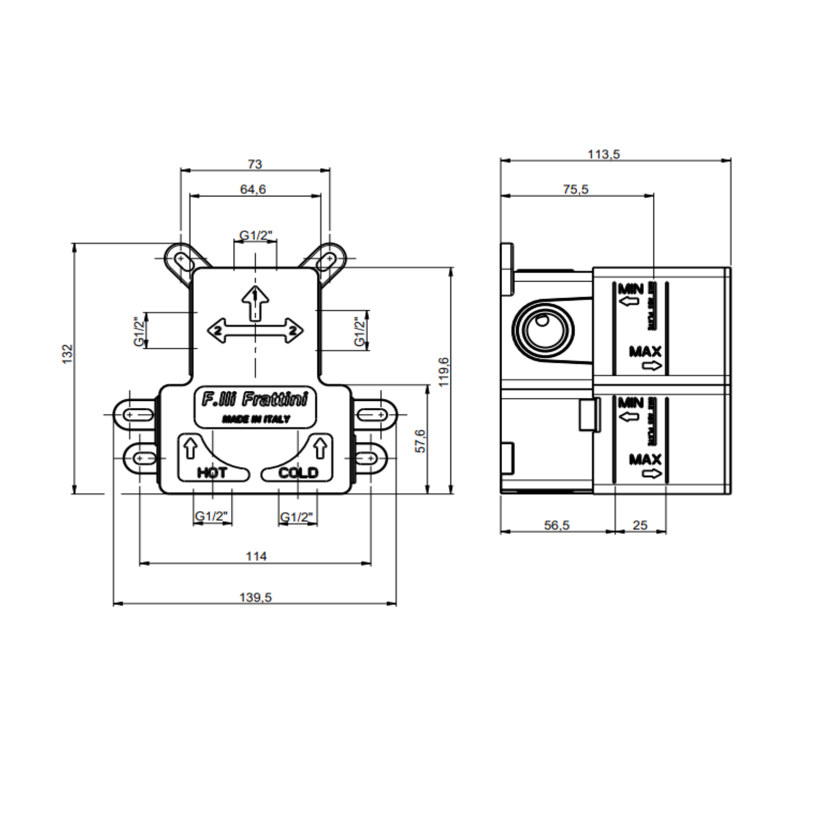 F.lli Frattini Gaia, Kit de finition mitigeur encastré 1 voie, plaque en ABS