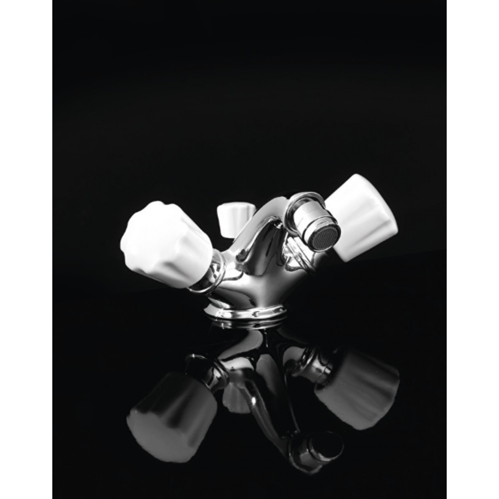 Batterie bidet monofor avec saltarello MORRIS, met en évidence une icône du style classique-contemporain. Morris sinspire du style des années 1940, rendu unique et caractéristique par le contraste équilibré entre le corps en laiton et la manette cylindrique avec des rainures, en céramique blanche. Disponible en différentes finitions de couleur : Bronze, Chrome, Nickel brillant et Or clair.