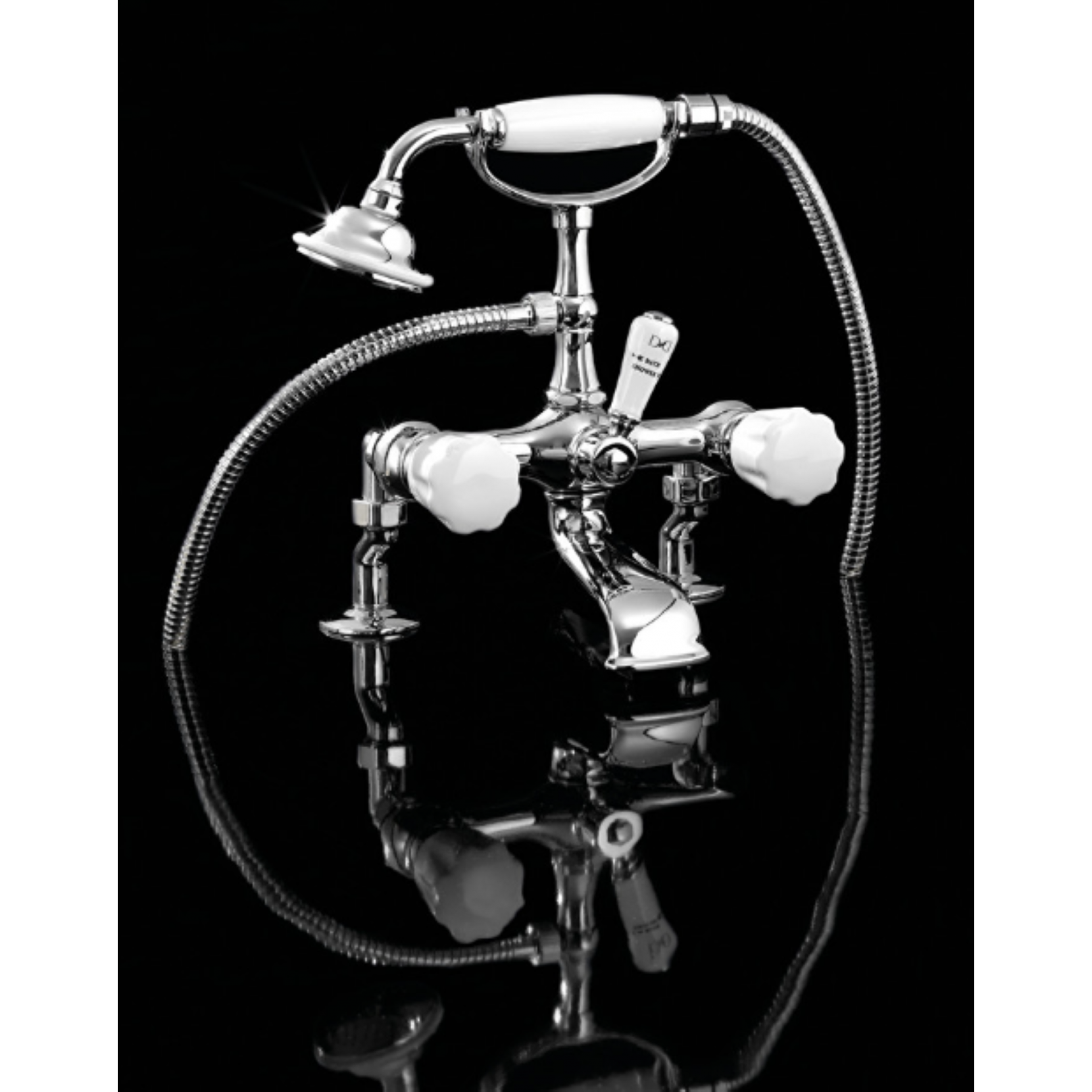Groupe de baignoire pour montage bord de la baignoire avec douchette et flexible MORRIS, met en valeur une icône du style classique-contemporain. Morris s’inspire du style des années quarante, rendu unique et caractéristique par le contraste équilibré entre le corps en laiton et la poignée cylindrique à rainures, en céramique blanche. Disponible en différentes finitions de couleur : Bronze, Chrome, Nickel brillant et Or clair.