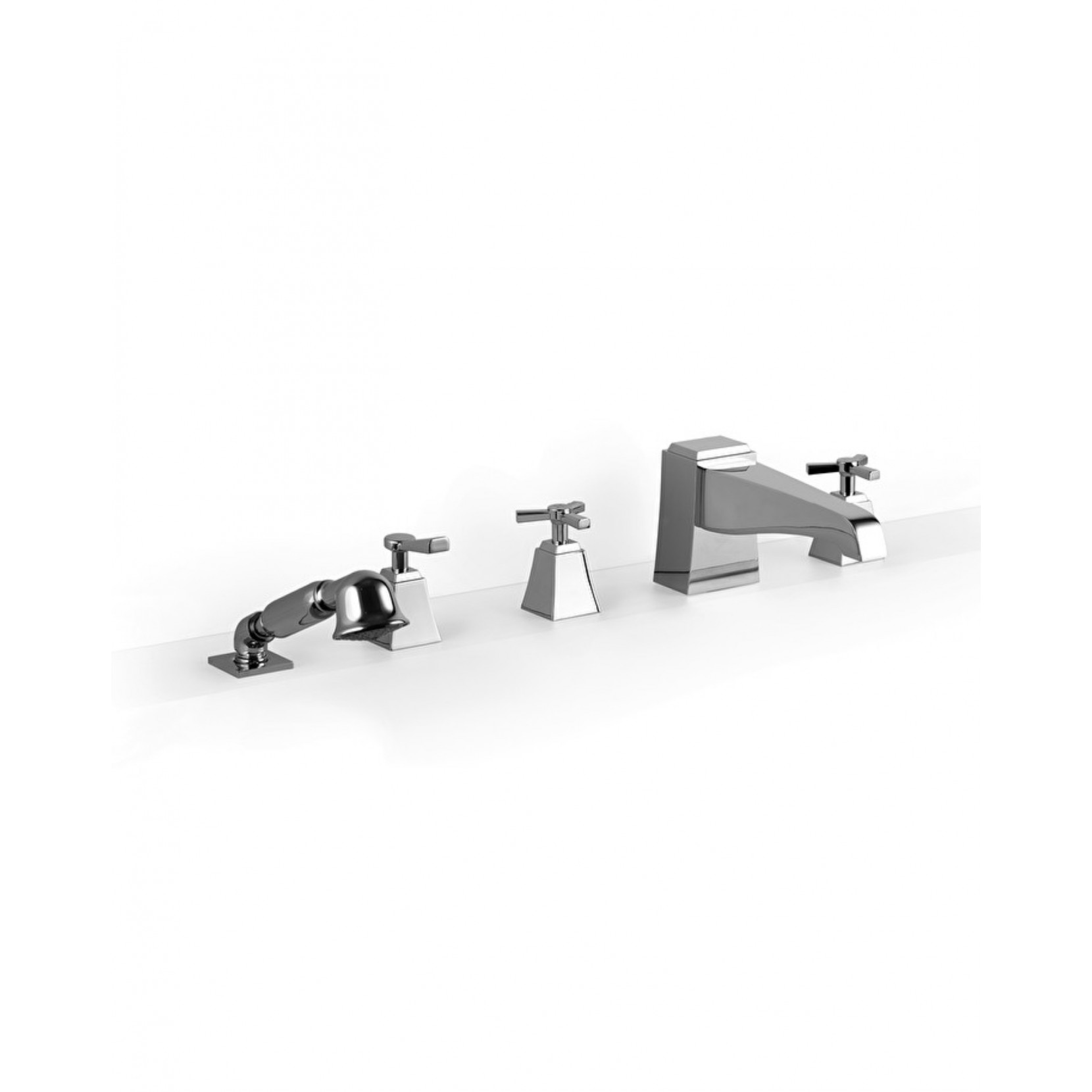 Le groupe baignoire pour montage bordovasca 5 trous avec douchette, veut rendre hommage à l’Amérique des années trente, en relisant dans une clé contemporaine esthétique et proportion. La solidité monolithique, les lignes géométriques et les multiples facettes réfléchissantes sont de forte inspiration moderniste. Disponible en différentes finitions de couleur : Bronze, chrome, nickel poli, or clair.