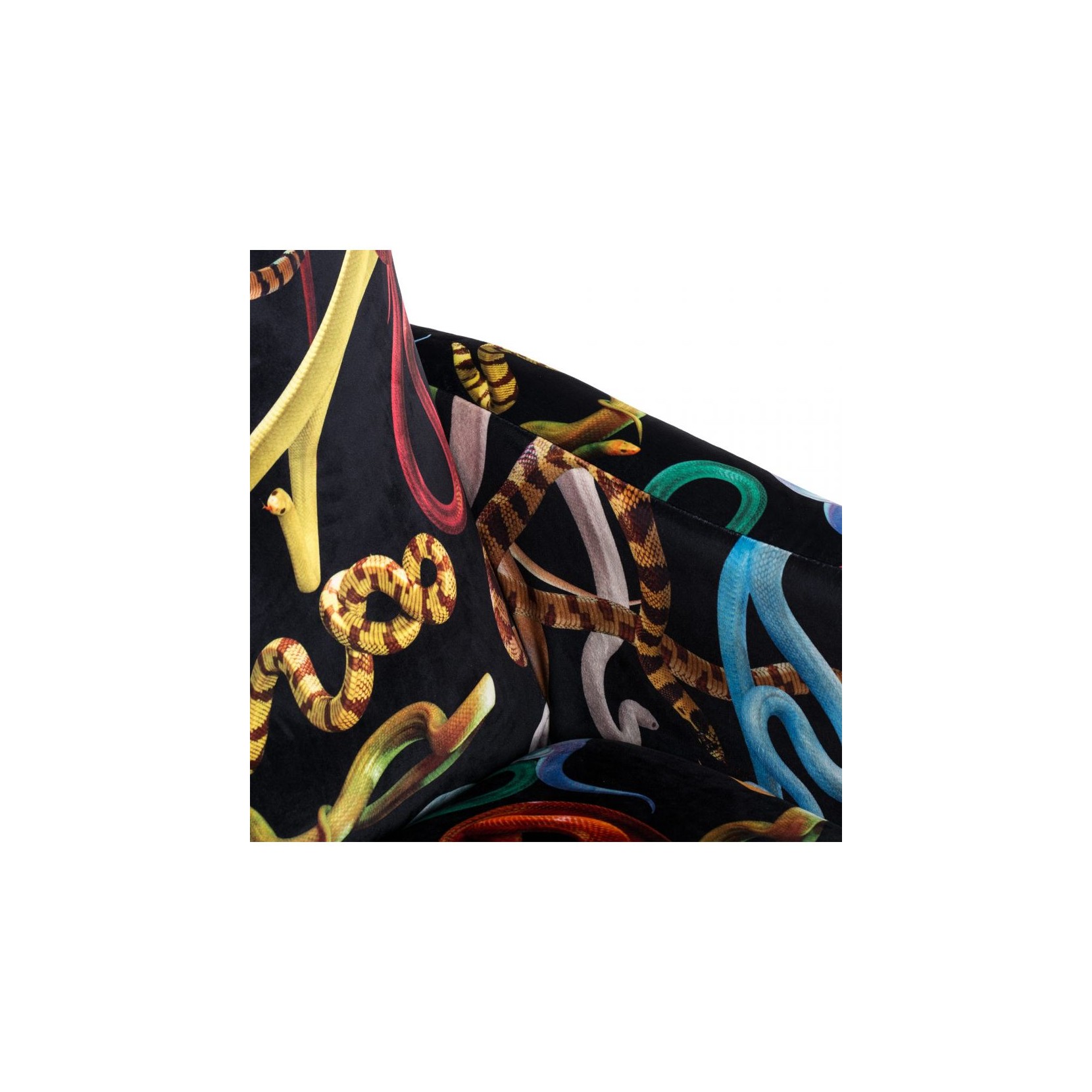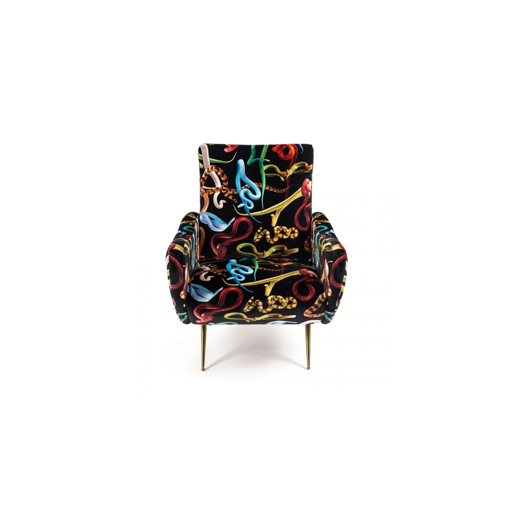 SELETTI avec la série de fauteuils conçue par le designer Toiletpaper rend hommage au fauteuil traditionnel de style années 50 avec des images extravagantes.
