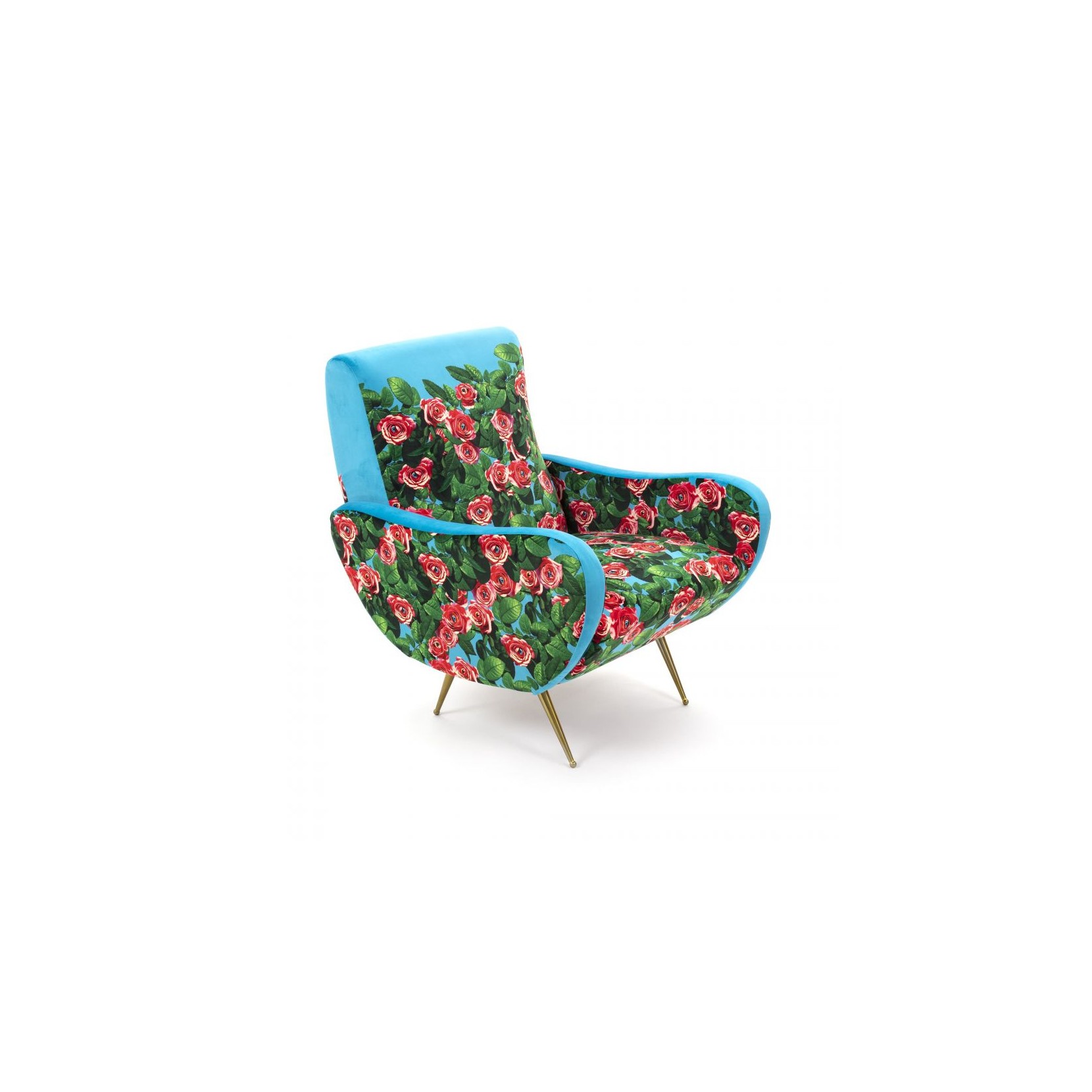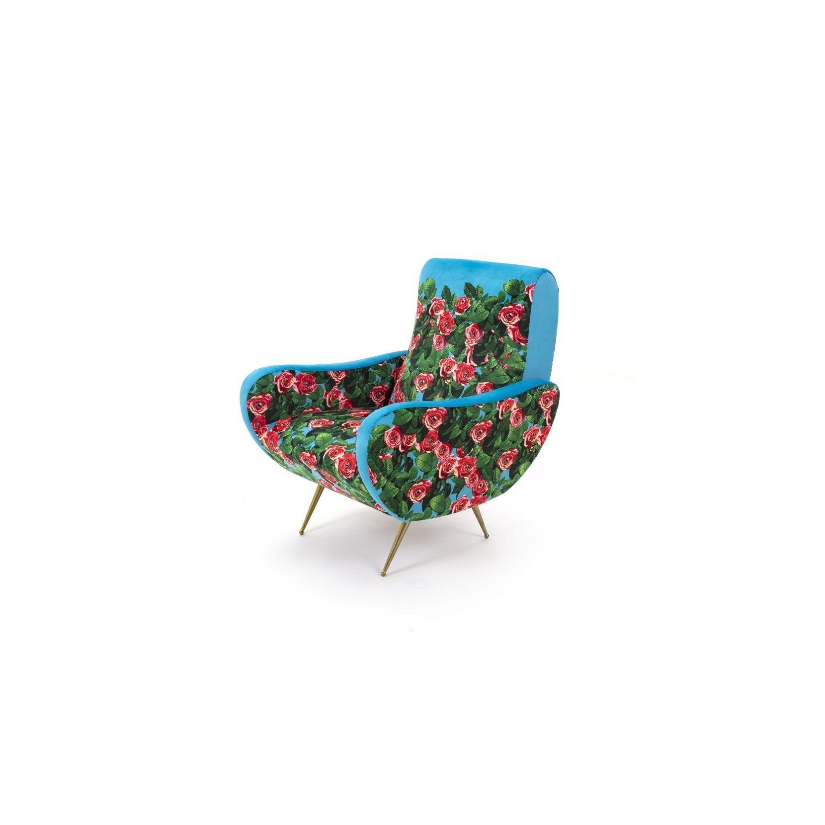 SELETTI avec la série de fauteuils conçue par le designer Toiletpaper rend hommage au fauteuil traditionnel de style années 50 avec des images extravagantes.