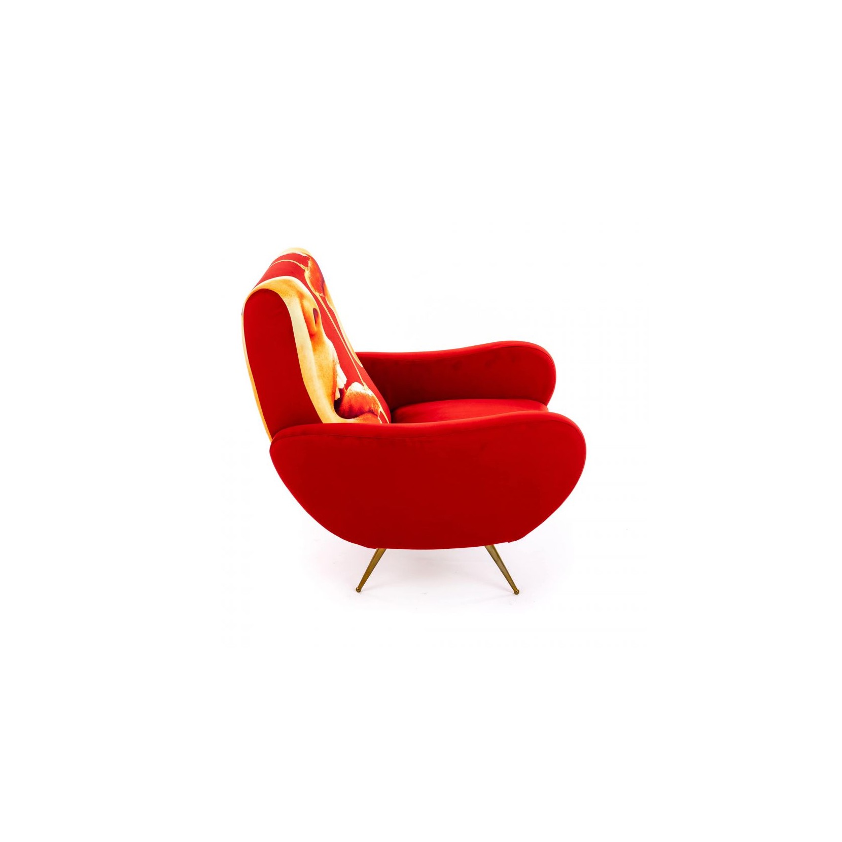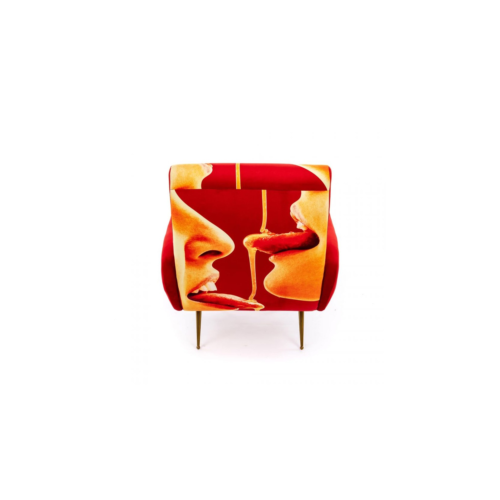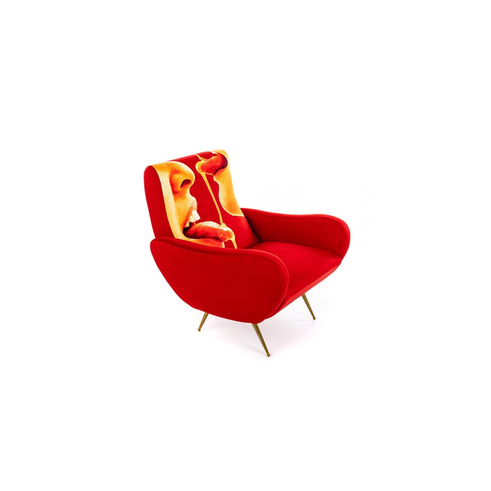 SELETTI avec la série de fauteuils conçue par le designer Toiletpaper rend hommage au fauteuil traditionnel de style années 50 avec des images extravagantes.