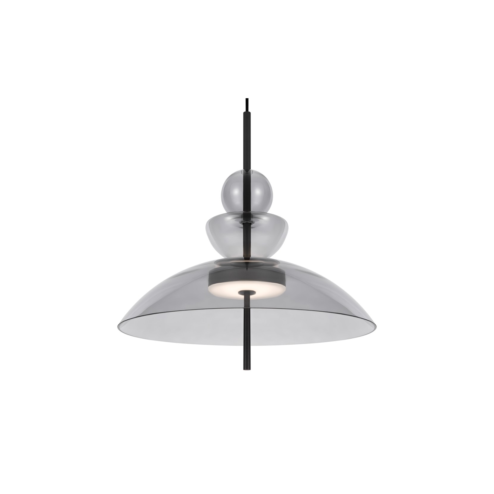 Larmure est en métal de couleur noire, avec un design minimaliste de lampes en verre disponibles en trois couleurs : fumé, transparent et gris.