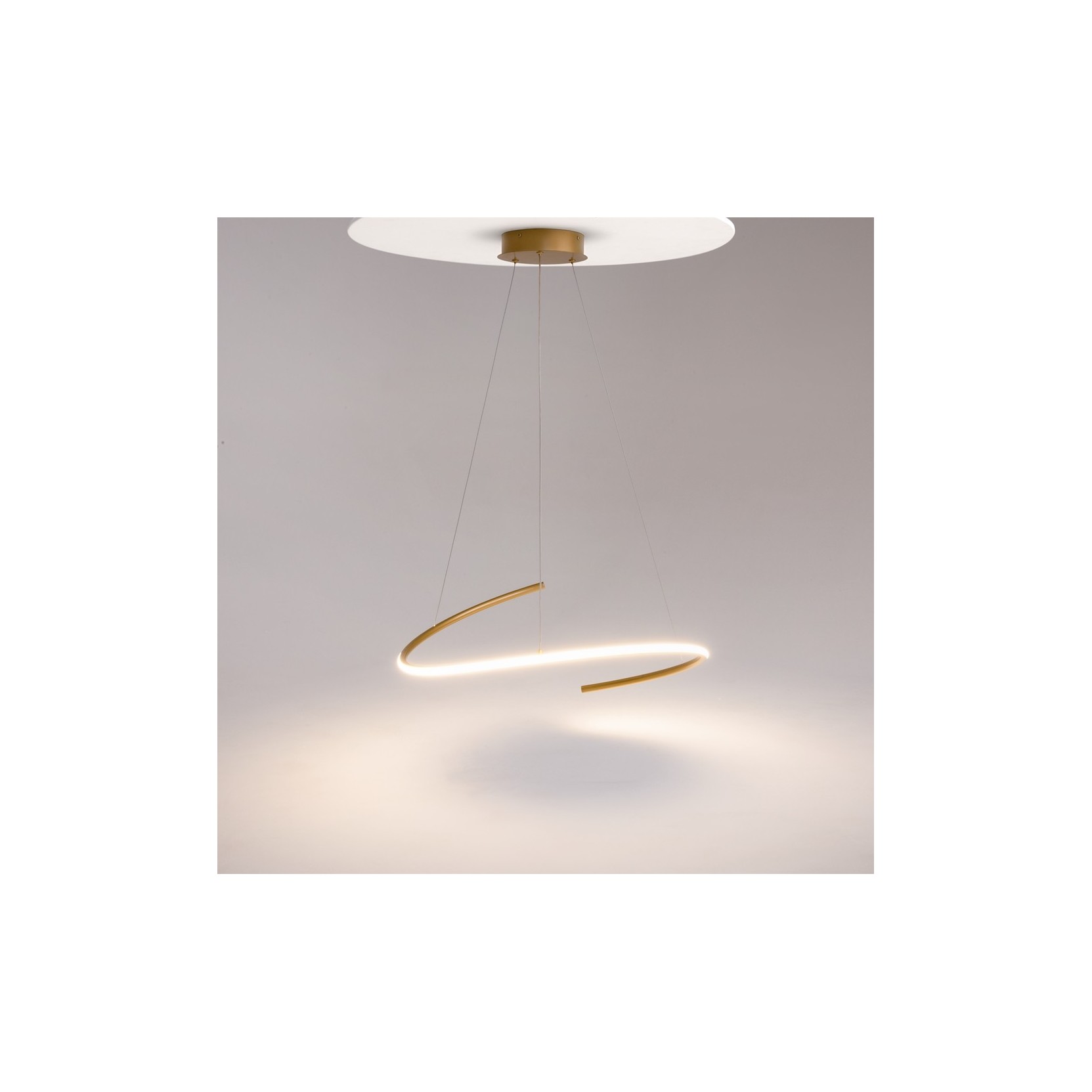 Illuminez vos espaces con l'essence même de la modernité. La suspension Curve est une sculpture lumineuse qui redéfinit le concept de lustre à travers une ligne fine et dynamique. Caractérisée par un profil circulaire ouvert qui semble tracé à main levée dans le vide, cette lampe crée un sentiment de mouvement et de légèreté unique, devenant le point central visuel de tout environnement contemporain.