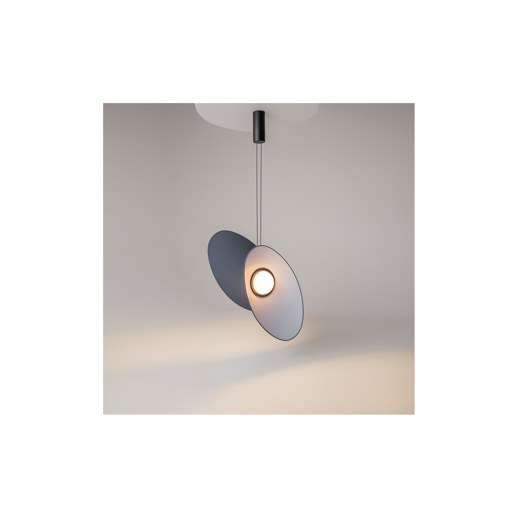 La suspension Evolution est une œuvre d'art minimaliste qui joue avec l'équilibre et la superposition des formes. Caractérisée par deux disques circulaires asymétriques qui semblent orbiter autour d'une source lumineuse centrale, cette lampe crée un effet visuel dynamique et sophistiqué. C'est la solution idéale pour ceux qui recherchent un éclairage à la fois fonctionnel et sculptural.