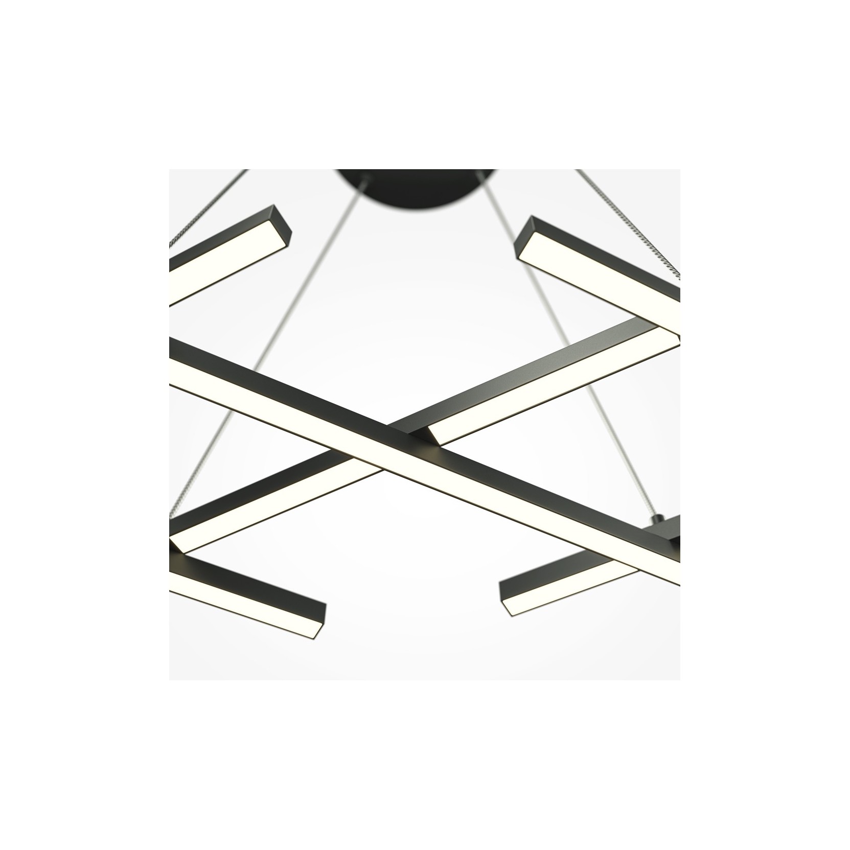 La suspension Halo redéfinit le concept du lustre moderne à travers une structure à emboîtement qui rappelle les trames architecturales et les circuits numériques. Composée d'une série de profilés linéaires in métal noir qui s'entrecroisent de manière orthogonale, cette lampe crée un réseau lumineux suspendu dans le vide. Sa forme étendue et plate la rend parfaite per éclairer de grandes surfaces horizontales, comme de longues tables de salle à manger ou des espaces de travail créatifs.
