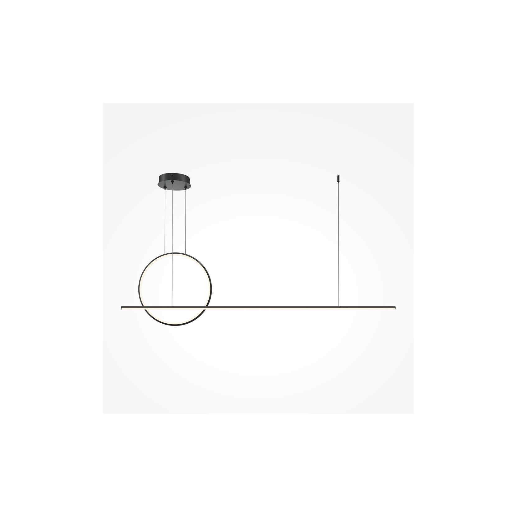 La lampe Halo représente une synthèse impeccable entre rigueur architecturale et élégance poétique. La structure se compose de deux éléments géométriques purs qui semblent défier la gravité : un cercle lumineux parfait intersectant une tige horizontale ultra-fine. Cette composition asymétrique crée un équilibre visuel dynamique, rendant la lampe idéale pour être placée au-dessus de longues tables de salle à manger, d'îlots de cuisine ou de bureaux de direction.