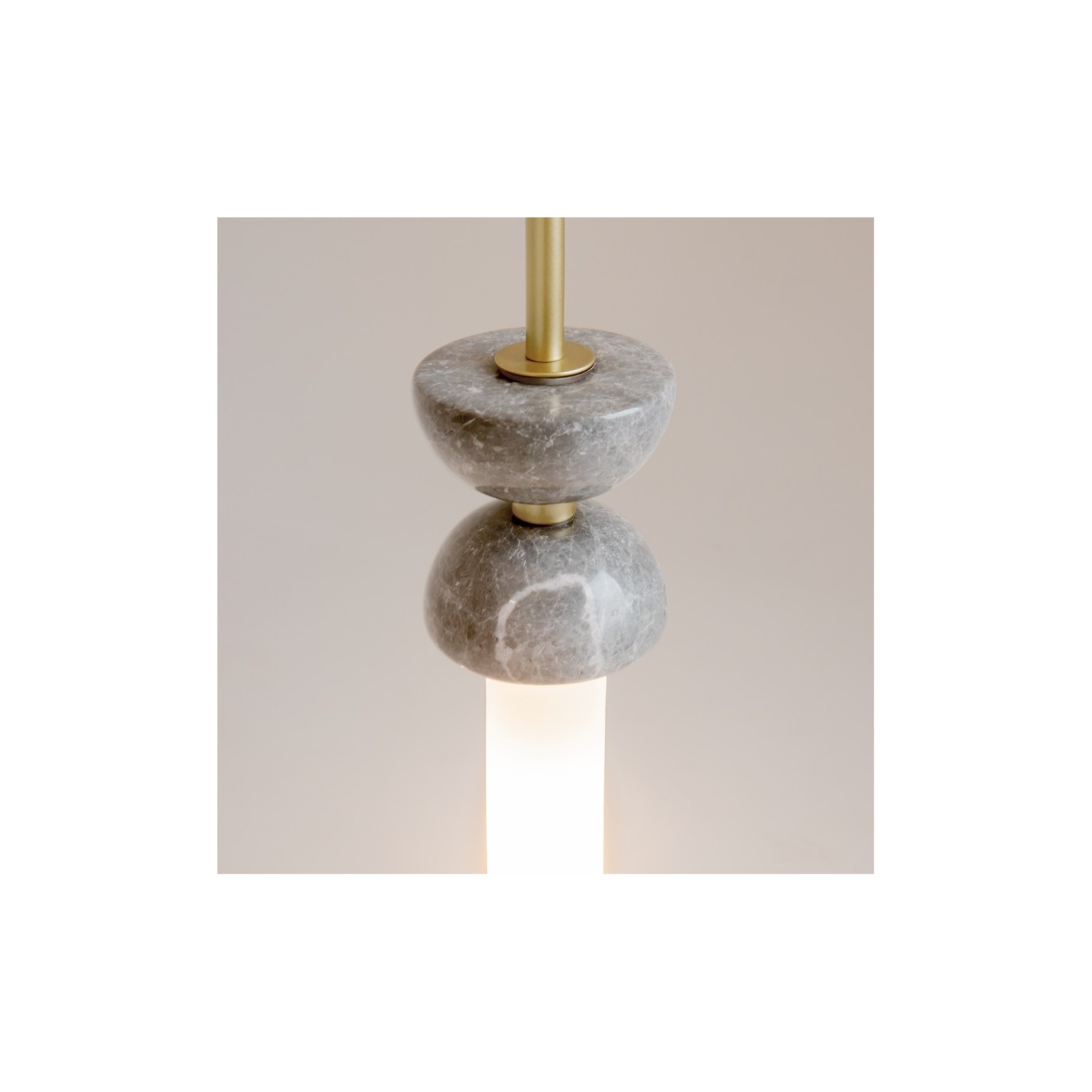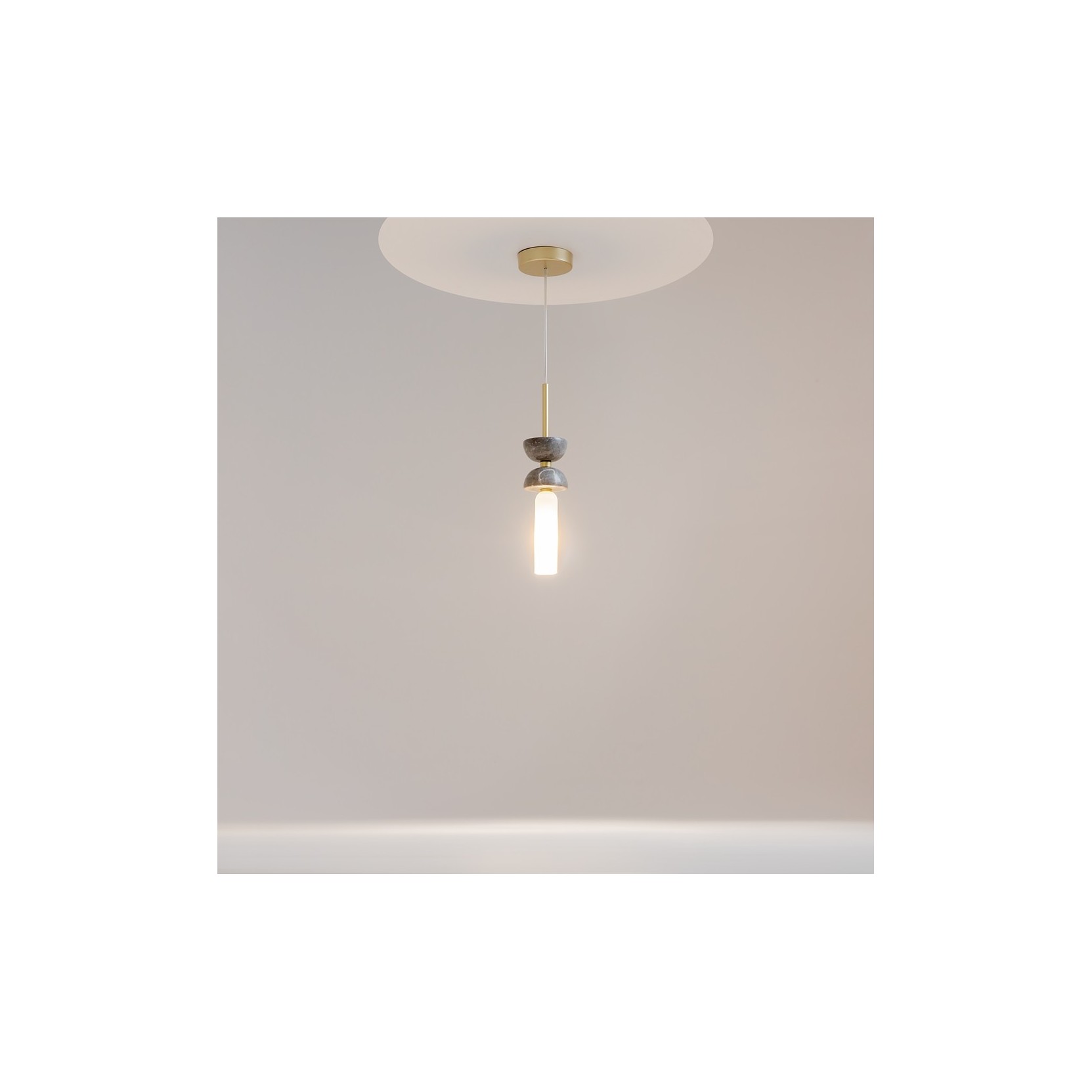 La lampe Kyoto redéfinit le concept d'éclairage ponctuel à travers un jeu raffiné de volumes superposés. La structure est caractérisée par une partie supérieure composée de deux coupoles opposées, qui constituent le pivot visuel et matériel du design. Sous ces dernières s'insère un diffuseur cylindrique en verre opalin blanc, qui émet une lumière chaude et parfaitement diffuse.