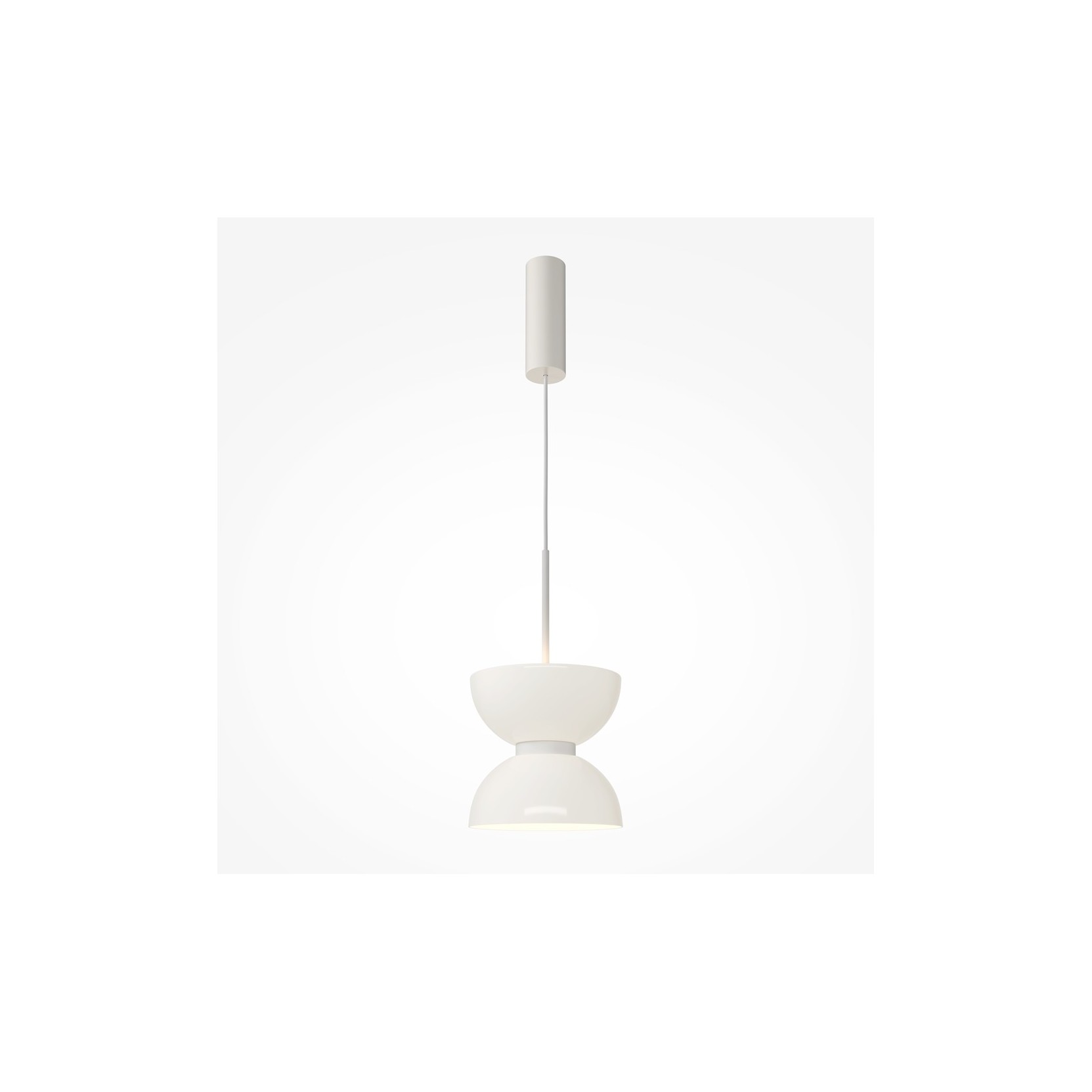 La lampe Kyoto redéfinit le concept d'éclairage ponctuel à travers un jeu raffiné de volumes superposés. La structure est caractérisée par une partie supérieure composée de deux coupoles opposées, qui constituent le pivot visuel et matériel du design. Sous ces dernières s'insère un diffuseur cylindrique en verre opalin blanc, qui émet une lumière chaude et parfaitement diffuse.