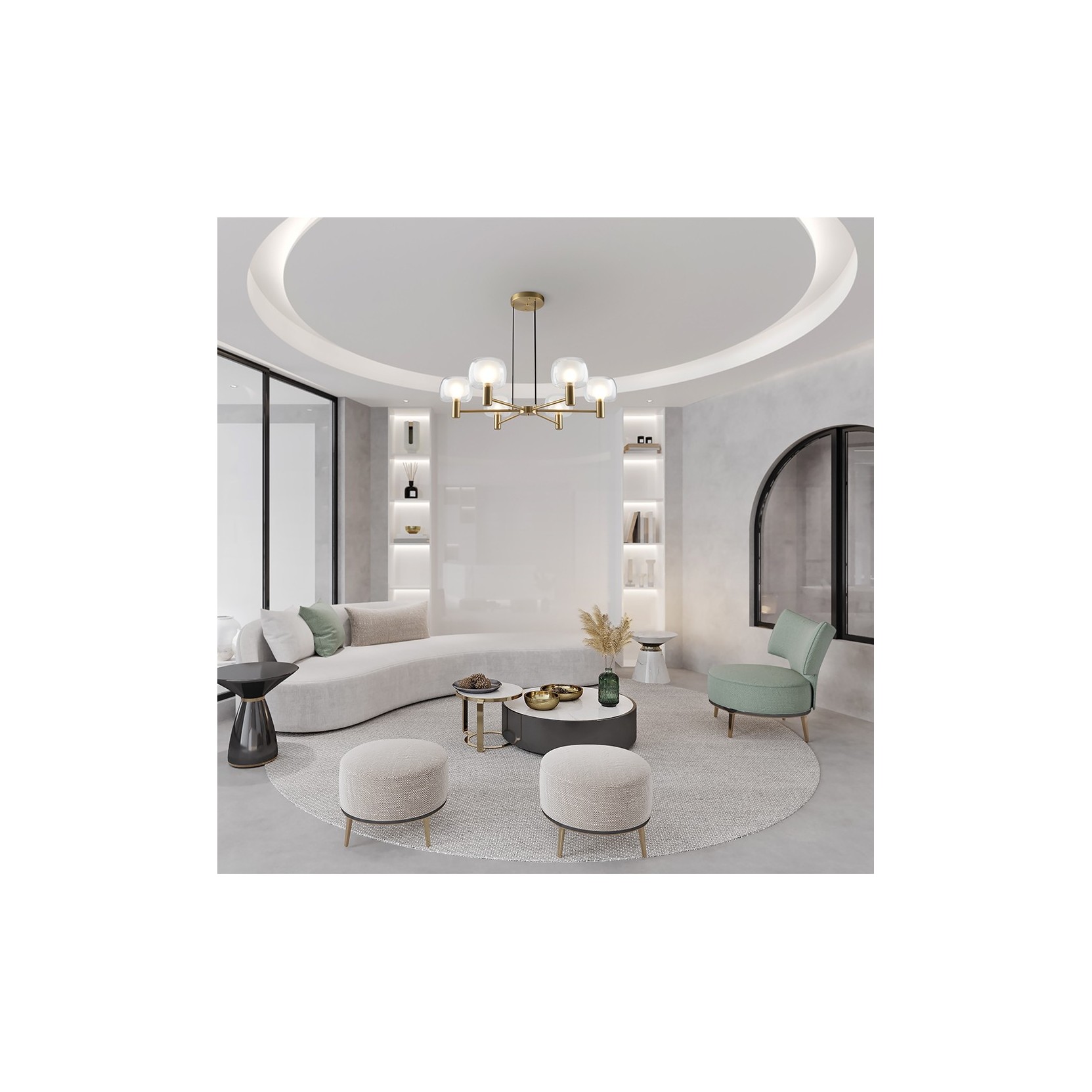 La suspension Vision est un système d'éclairage linéaire qui allie l'élégance de l'or satiné à la légèreté du verre soufflé. Son design horizontal ne fait un élément parfait pour définir les espaces de convivialité ou de travail avec une touche de modernité sophistiquée.