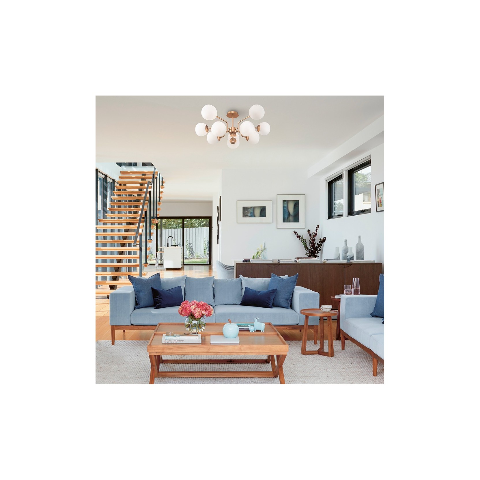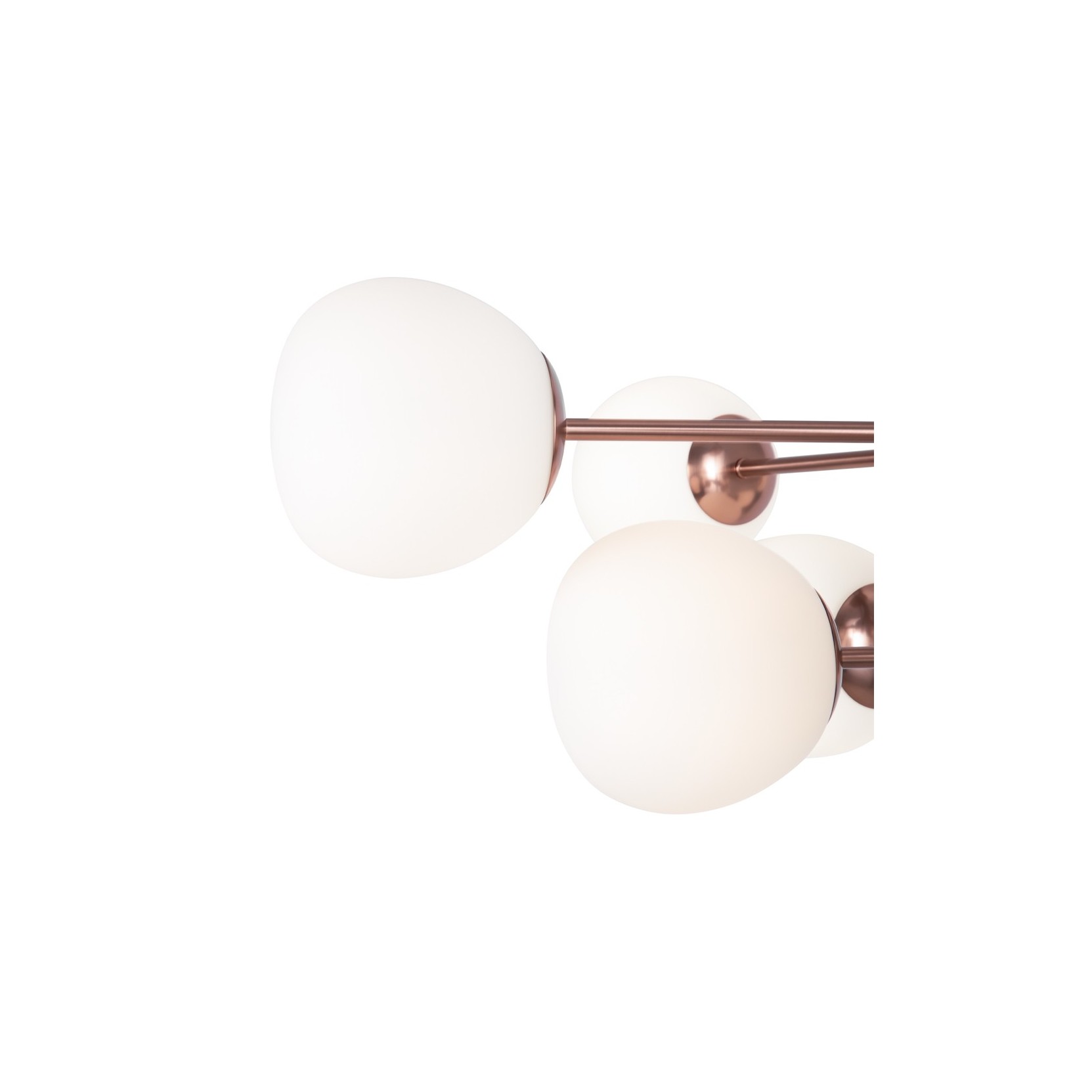 La suspension Erich est un système d'éclairage au design sophistiqué qui joue sur la linéarité et la fusion de formes géométriques pures. Caractérisée par une finition chaleureuse en or rose (ou cuivre satiné), cette suspension combine une esthétique moderne d'inspiration Mid-Century à une fonctionnalité idéale pour les surfaces allongées.
