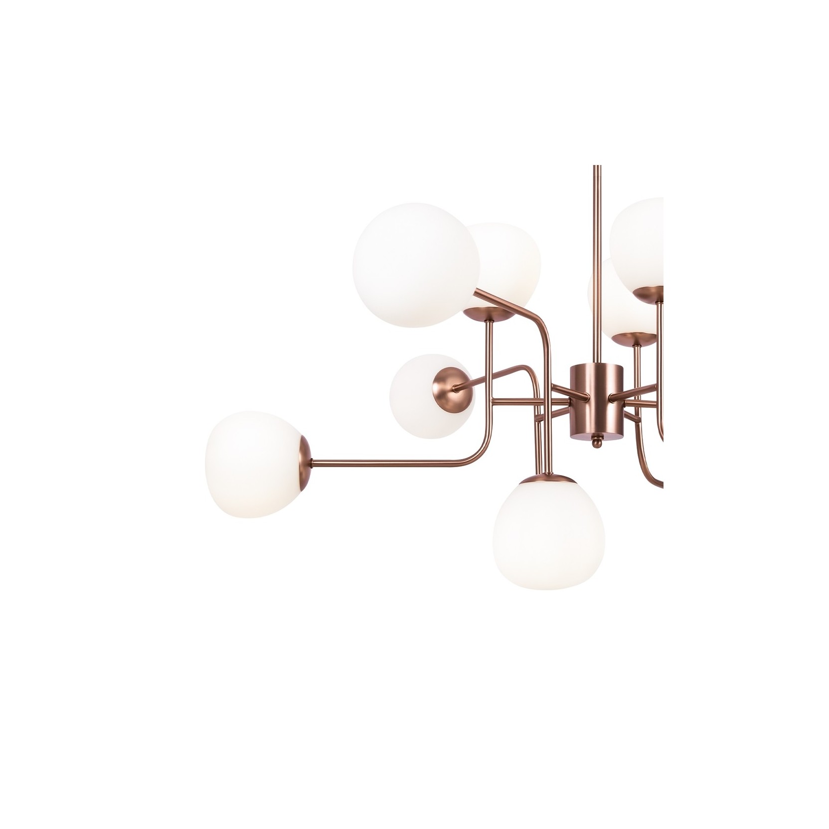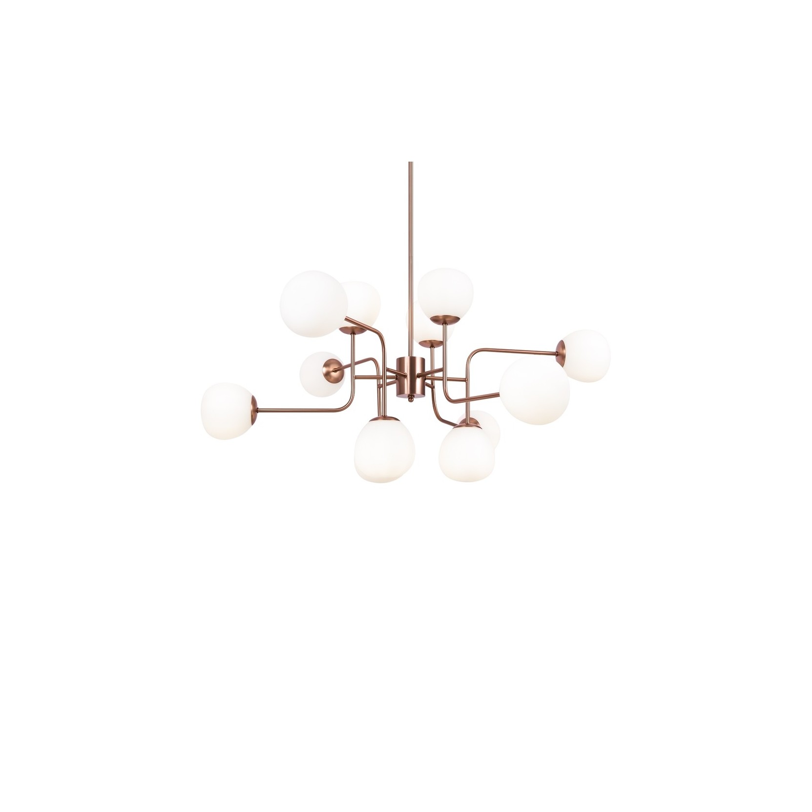 La suspension Erich est un système d'éclairage au design sophistiqué qui joue sur la linéarité et la fusion de formes géométriques pures. Caractérisée par une finition chaleureuse en or rose (ou cuivre satiné), cette suspension combine une esthétique moderne d'inspiration Mid-Century à une fonctionnalité idéale pour les surfaces allongées.