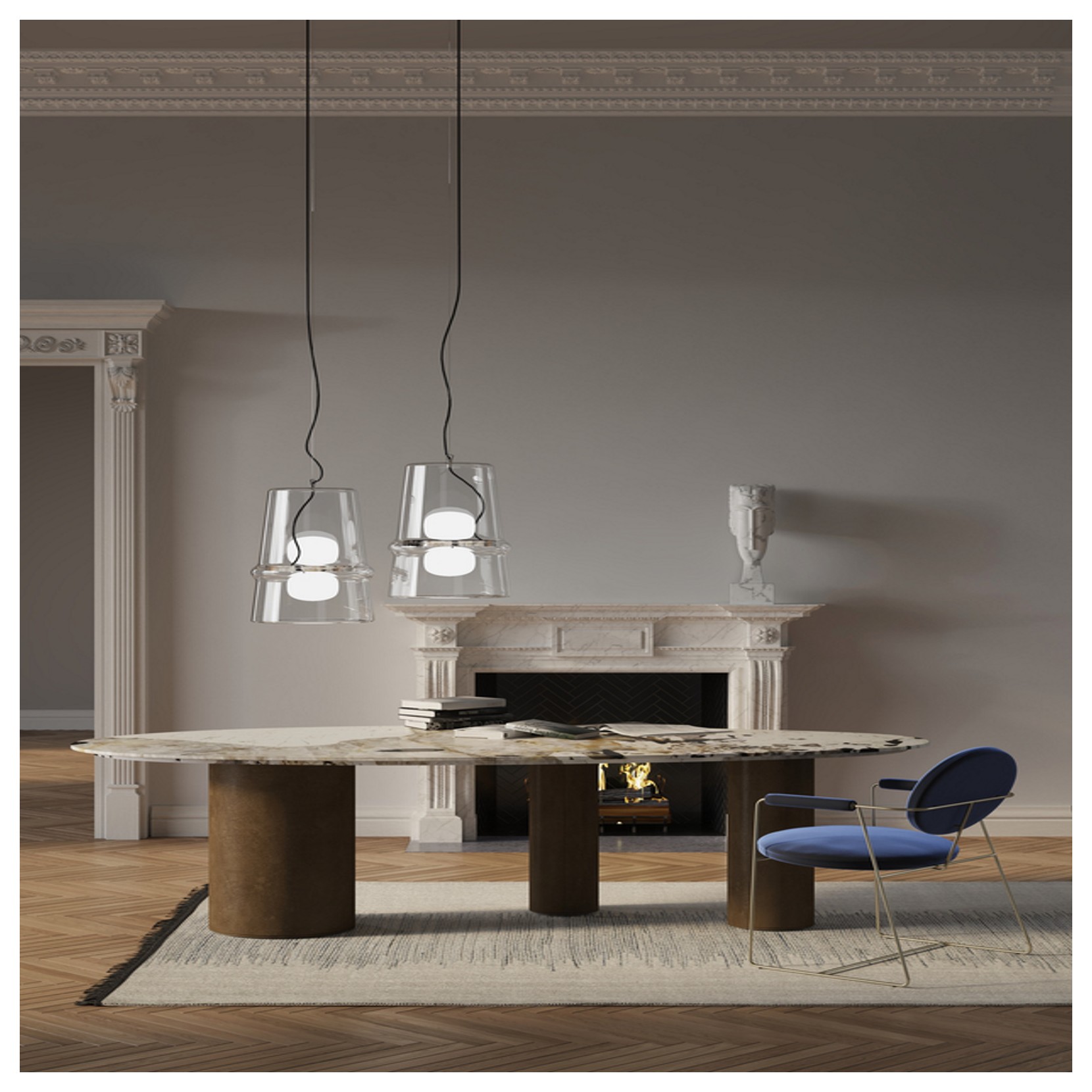 Hind Rabii propose la suspension Belle di The Great Edition, la lampe sinspire de la forme caractéristique du traditionnel verre marocain. La lampe se caractérise par une bande centrale discrète et délicate. Belle di The Great Edition a des lignes simples et propres, obtenues avec des techniques de soufflage précises.