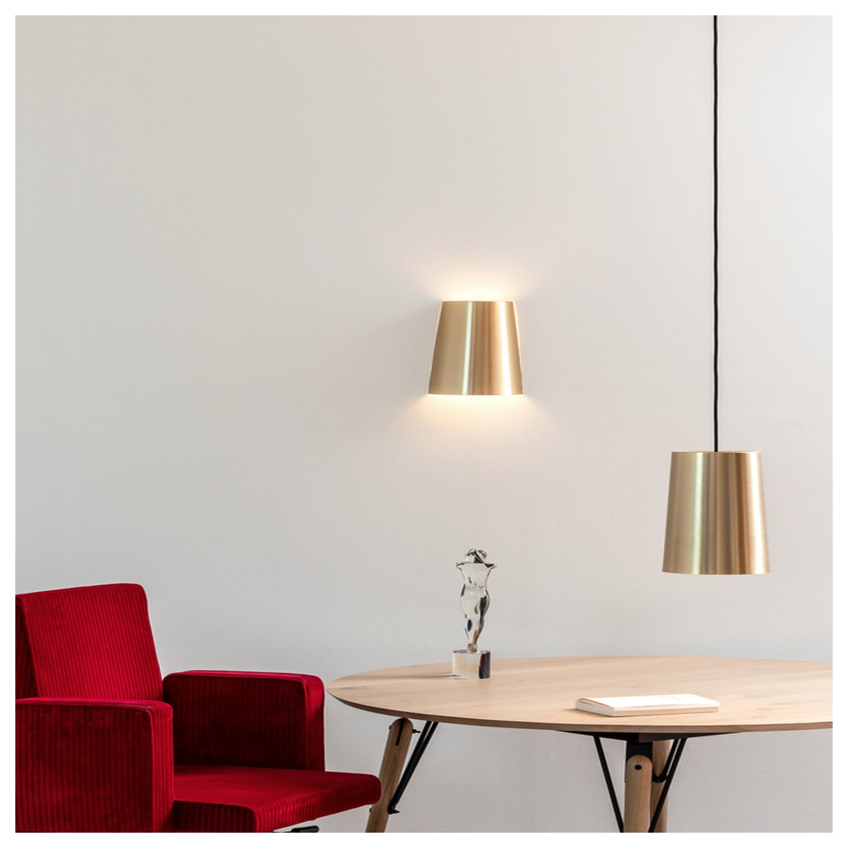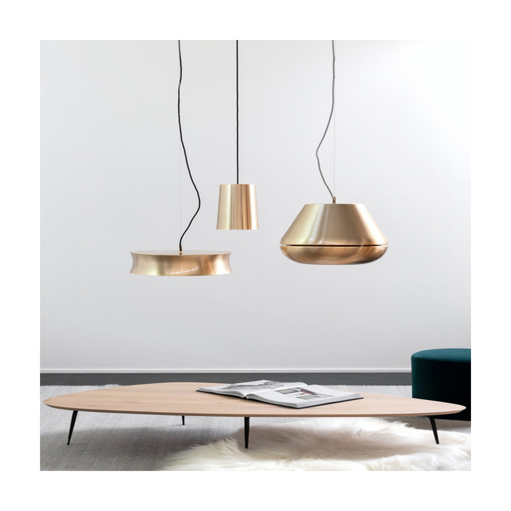 Hind Rabii propose la suspension 3X3X3. 3X3X3 C1 - Gold est équipée d’une éléngance innovante, différente des canons standard. La lampe à suspension est idéale pour n’importe quel intérieur, en fait, elle peut s’adapter à n’importe quel contexte, donnée par l’élégance du métal brossé de la structure.