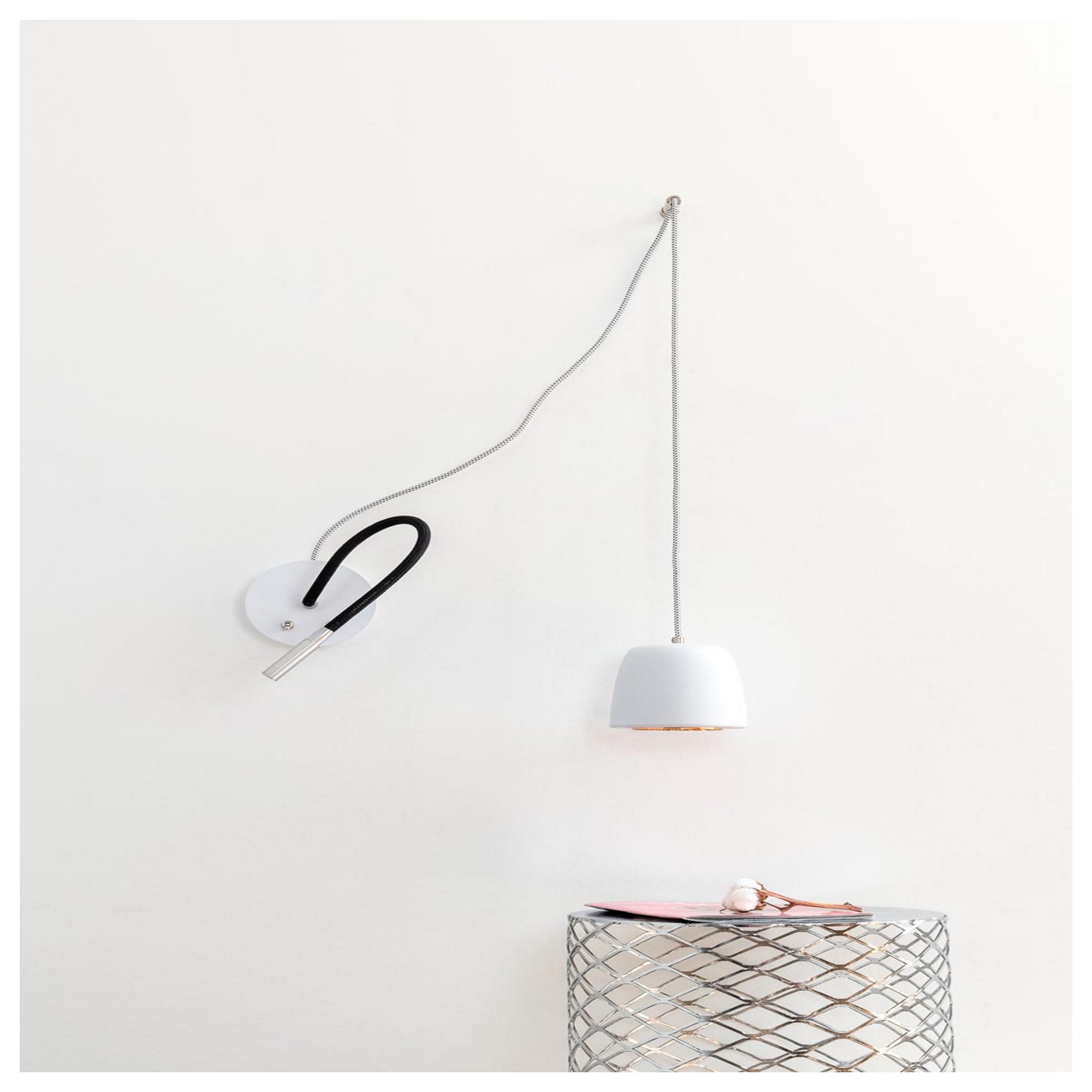 Hind Rabii propose la lampe Let Me Read. La lampe Let Me Read est la combinaison d’une applique et d’une suspension, un mélange de deux fonctions différentes. La lampe est indiquée pour ceux qui veulent un mobilier moderne mais avec une double fonctionnalité, sans limites et espace.